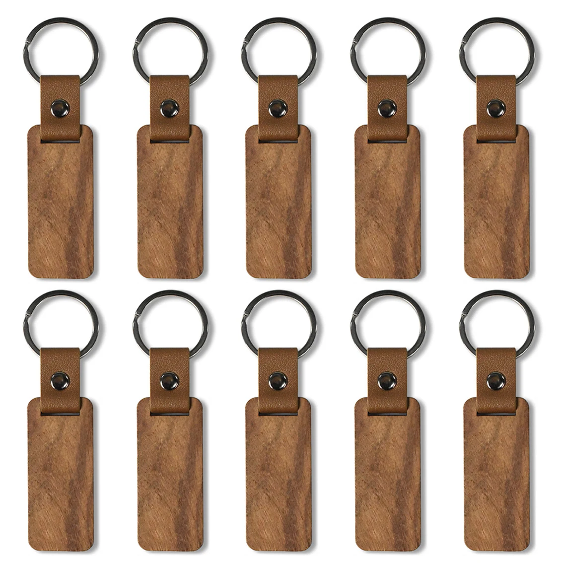 100Pcs Blank Wood Keychains PU Leather Keychain Rectangular Wood Key Chain