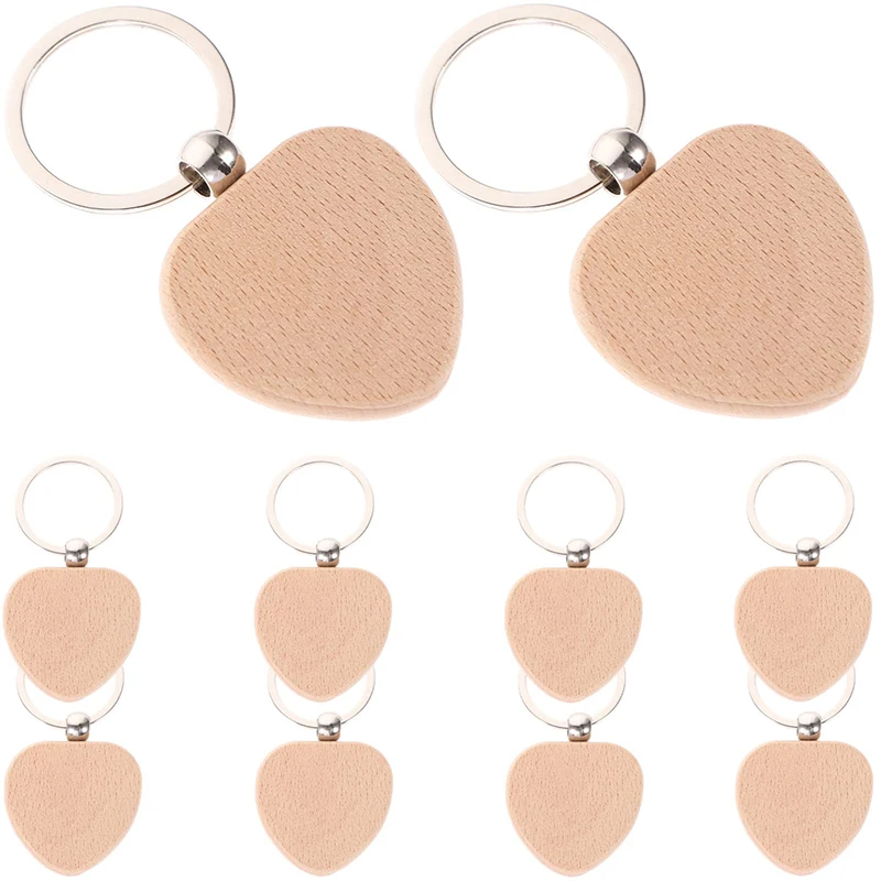 100Pcs DIY Blank Wooden Keychain Heart Key Ring Wooden Key Ring