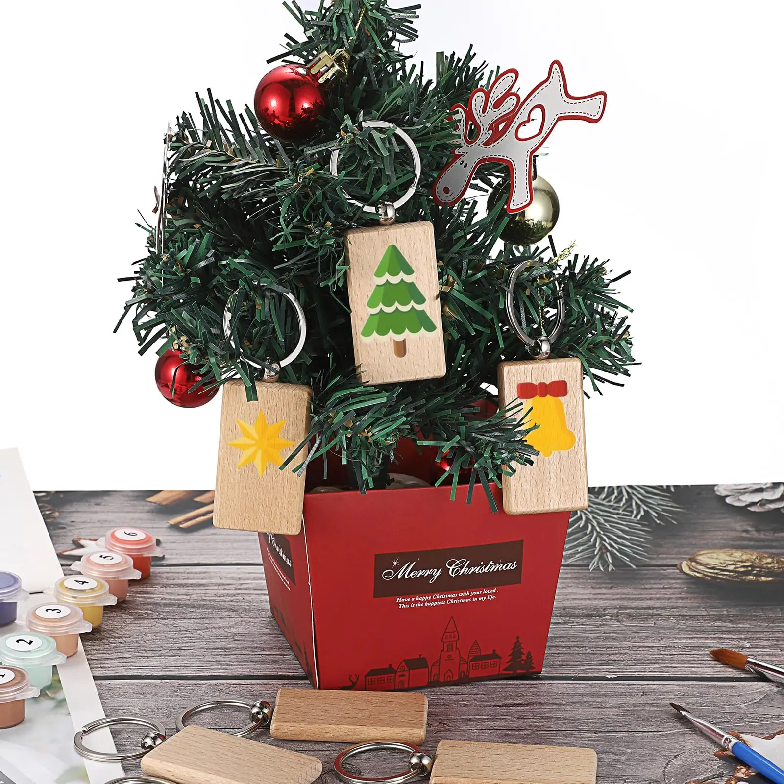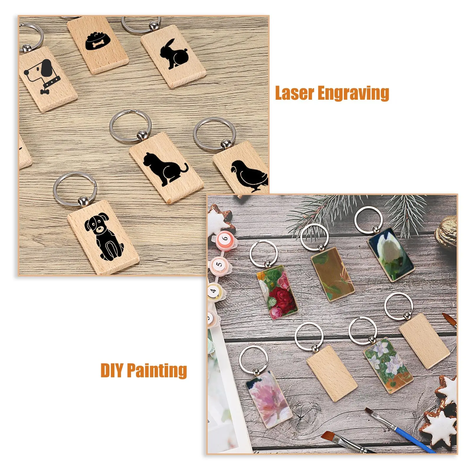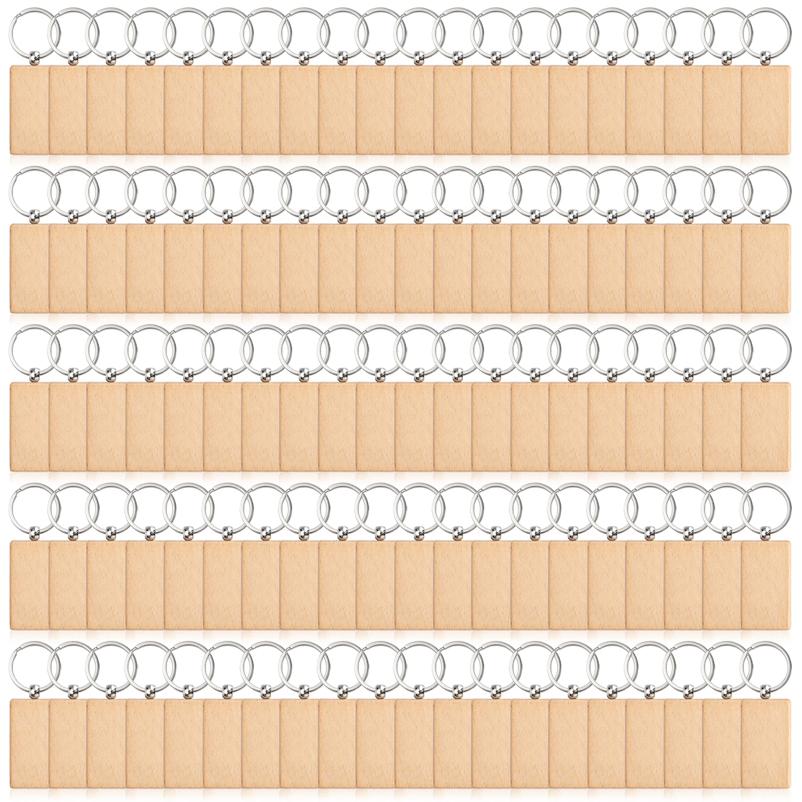 100Pcs Rectangular Blank Wooden Keychain Wood Key Chains Blank Wood Key Ring Suitable For Gift