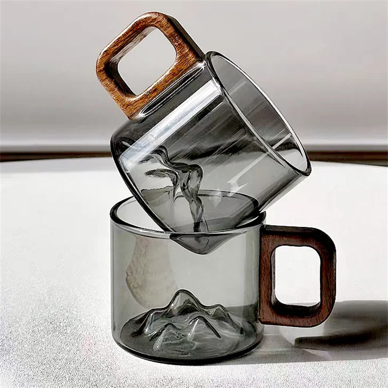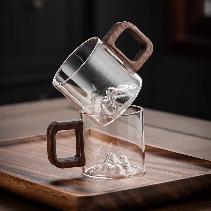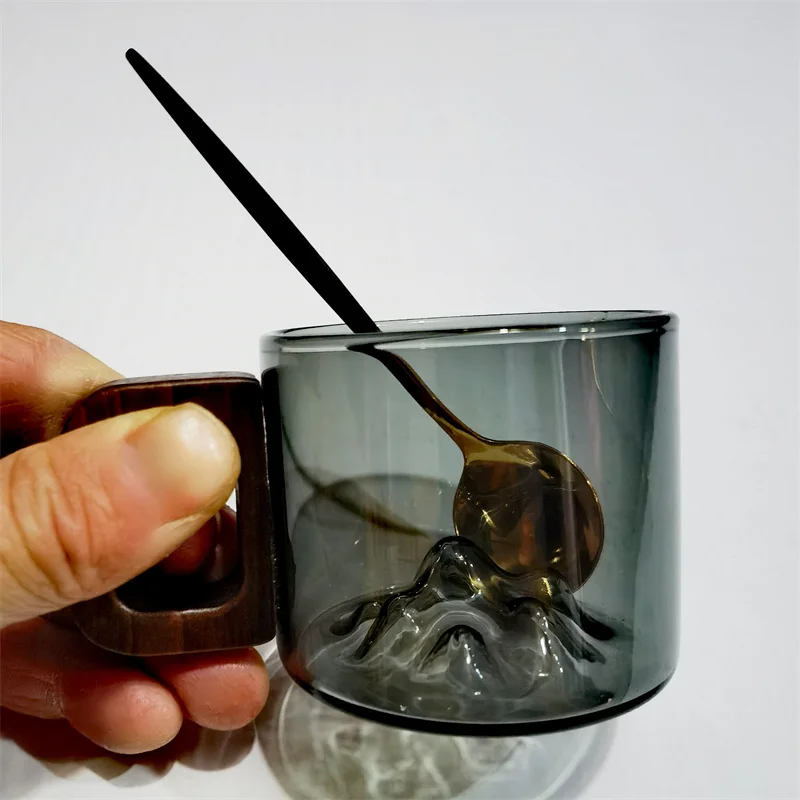 110ML Small Capacity Espresso Cups Glass Coffee Mug With Wooden Tray Spoon Reusable Tea Mug Art Home Barista Coffee Accessories