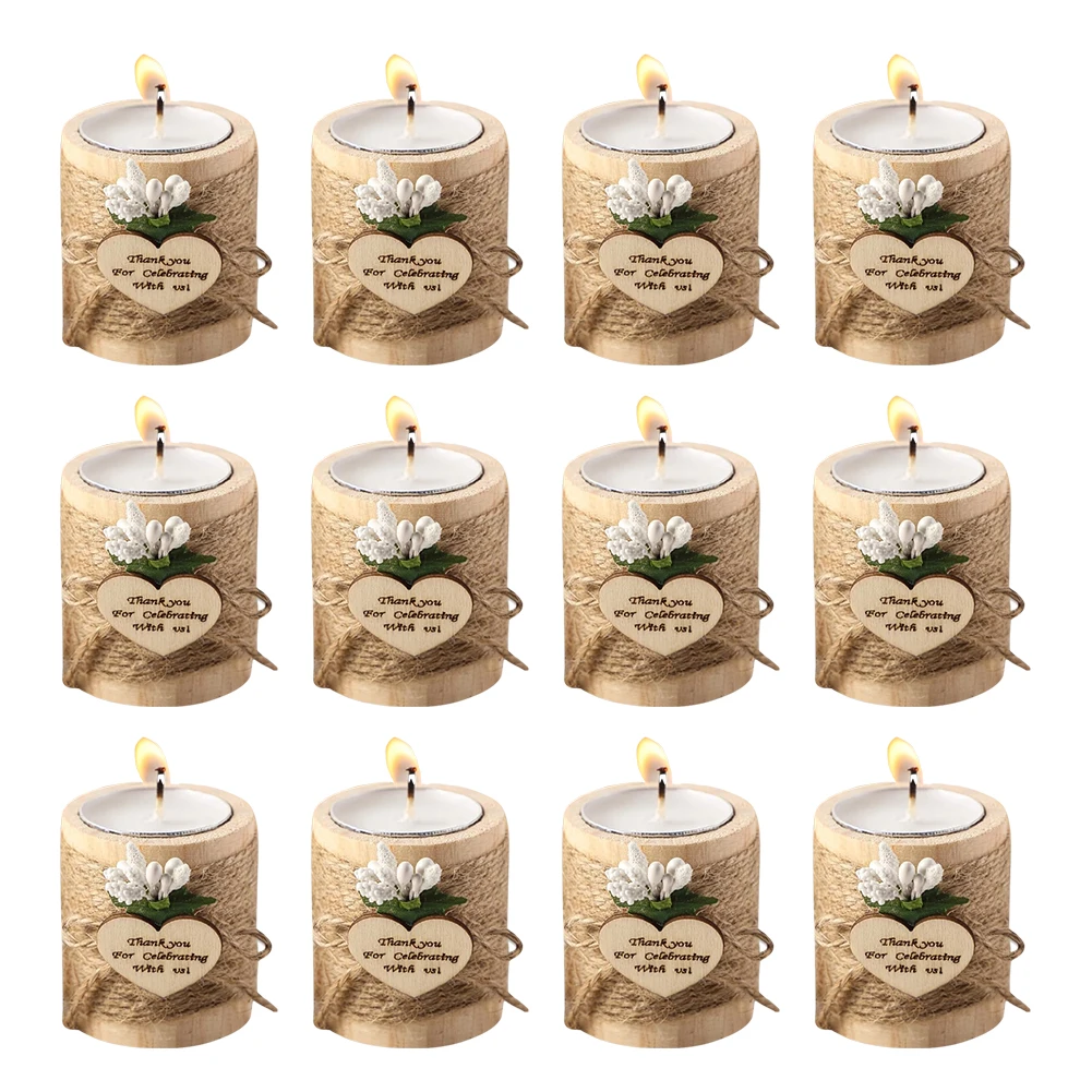 12 Pcs Set of Wooden Tealight Candle Holders Small Candlelight Candlestick Party Candle Favors Bridal Shower Favors for Wishing Wedding Party Birthday