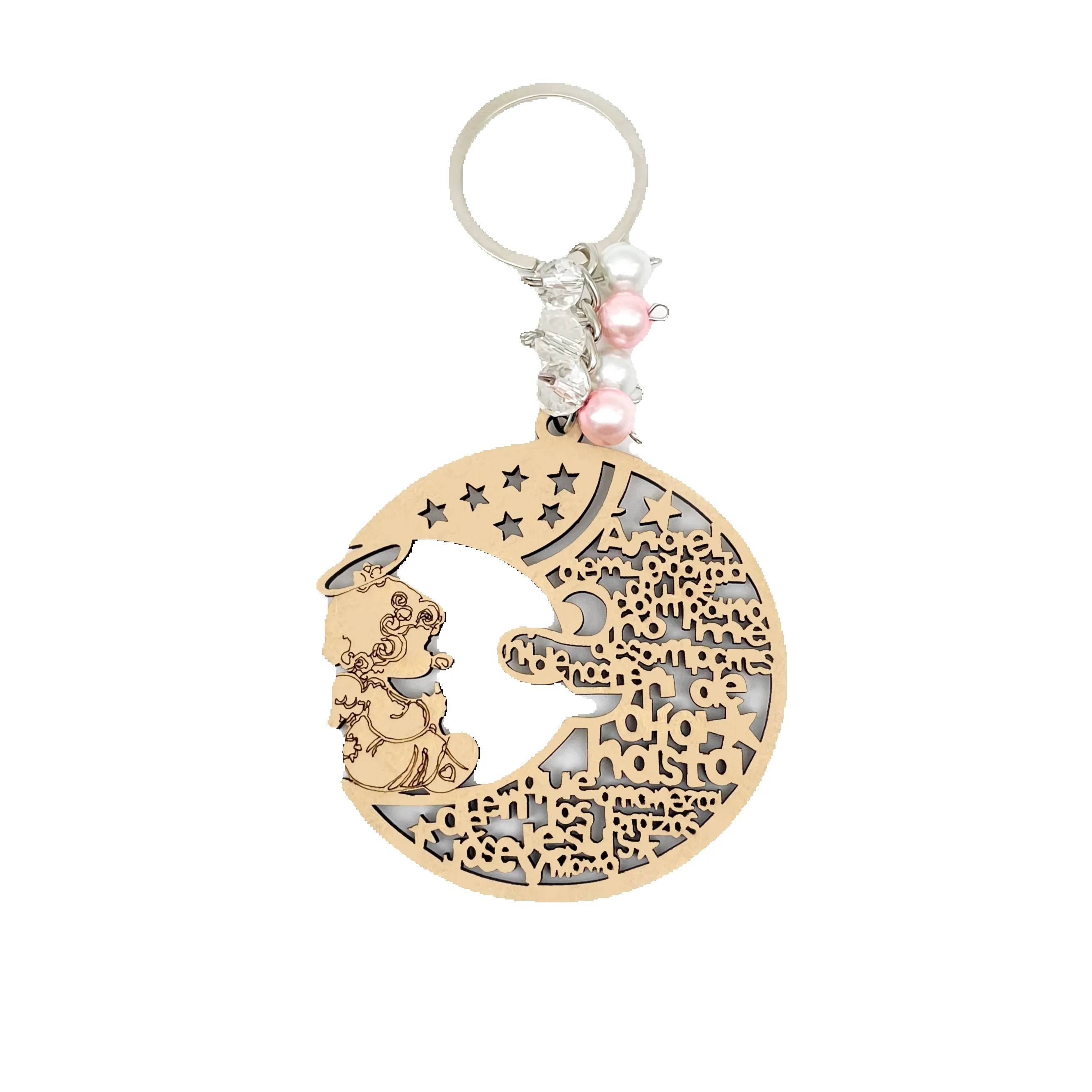 Listing includes 12Pcs Wood Laser Cut Angel Moon Girl keychain.