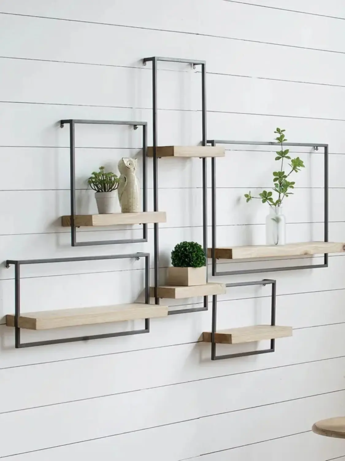 Featuring a dynamic design in warm,natural wood supported by a simple iron frame,this stunning wall shelf brings sleek,industrial style to any room.Add this unique piece in an eclectic entryway,urban loft,or farmhouse kitchen for an eye-catching way to accent a wall.Fill with cascading houseplants or framed photographs for a custom look that reflects your personal style.