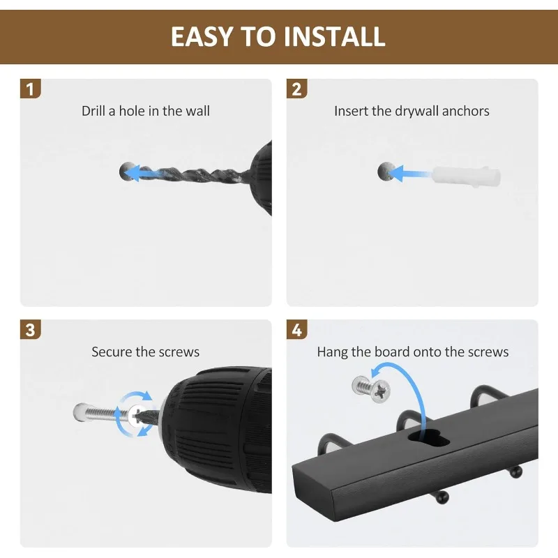 Easy to Install: No complicated assembly required. Simply mark the holes on your wall, drill, and insert the included screws. Hang the racks on the screws, and your jewelry organizer is ready to use in no time.