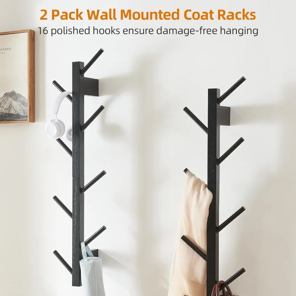 - 【Value Pack with 16 Hooks】: This set of 2 coat rack has a total of 16 hooks, providing ample space to organize and hang a variety of items. With 16 hooks, you can easily store coats, hats, scarves, bags, umbrellas, and other accessories, keeping everything in one convenient place. The additional hooks ensure that your entryway remains tidy and clutter-free, while offering easy access to your belongings. Whether in a busy household or a high-traffic area, the 16 hooks offer practical storage without compromising on style.