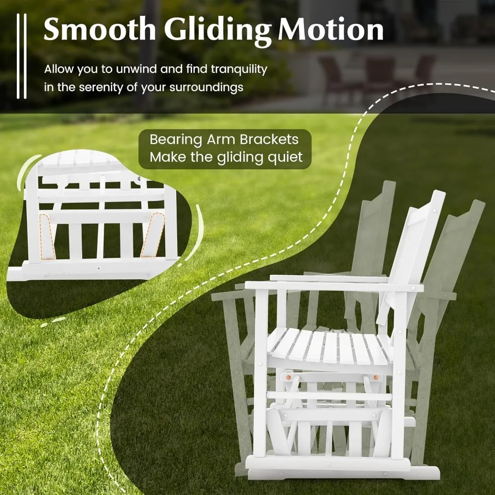 - 【Smooth Gliding Motion】This outdoor glider bench allows you to unwind and find tranquility in the serenity of your surroundings by gently swinging back and forth. And the bearing arm brackets make the gliding quiet.