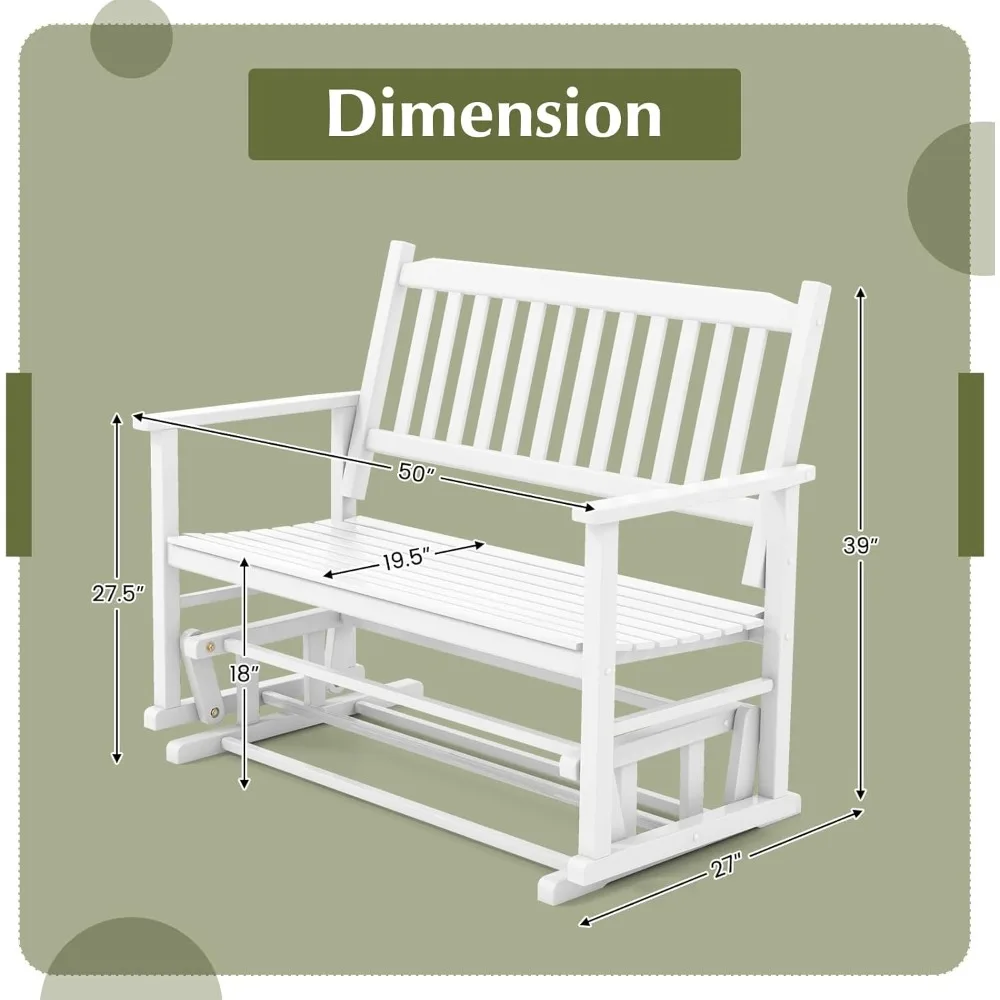 - 【2-person Glider Bench】Measuring 46.5"L x 19.5"W in the seat size and weighing 500 lbs in max load, this porch glider not only brings roomy seating area for 2 people but supports them steadily.