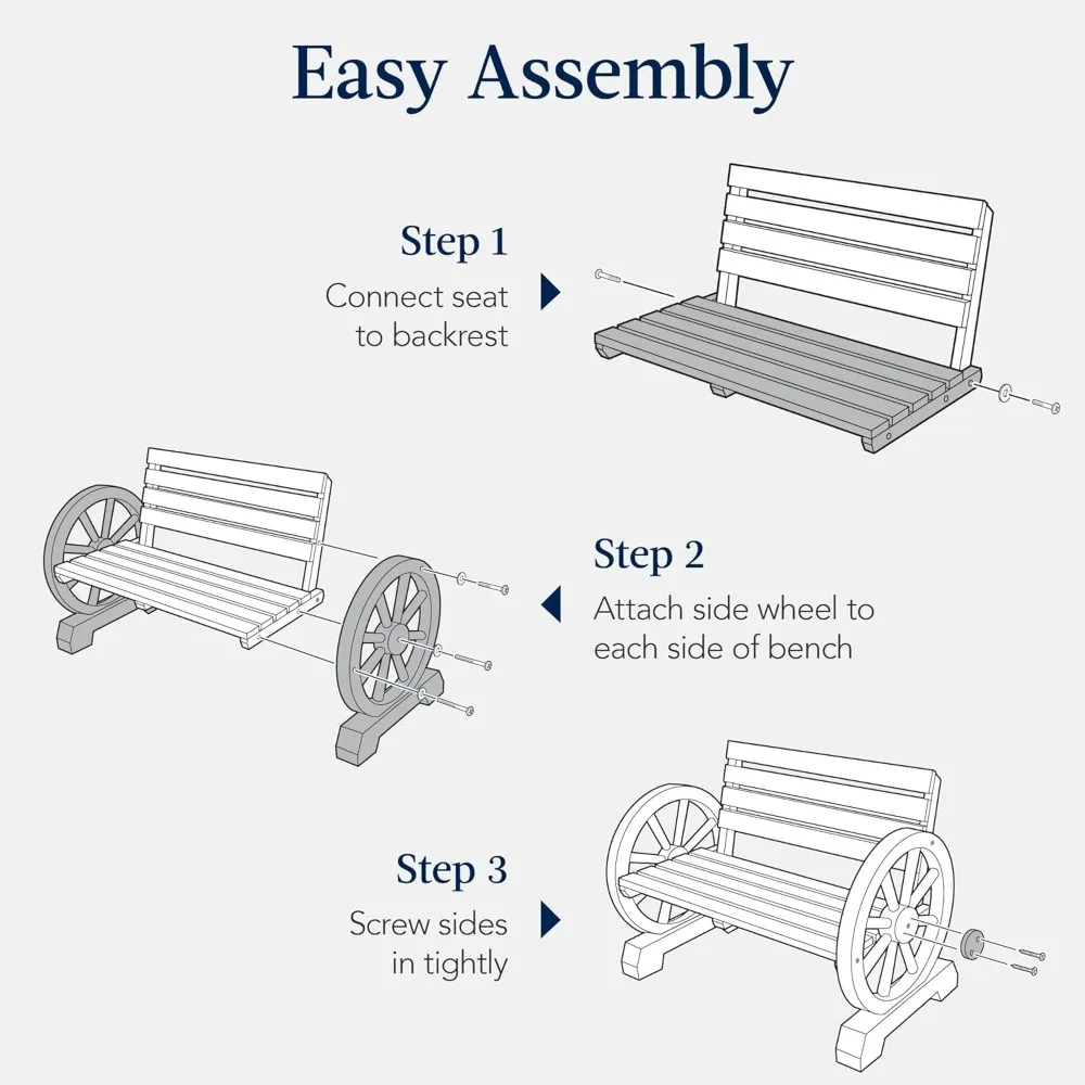 - EASY ASSEMBLY: Put this bench together in as little as 20 minutes; simply connect the seat to the backrest before attaching a side wheel to each side of the bench and screwing them tightly