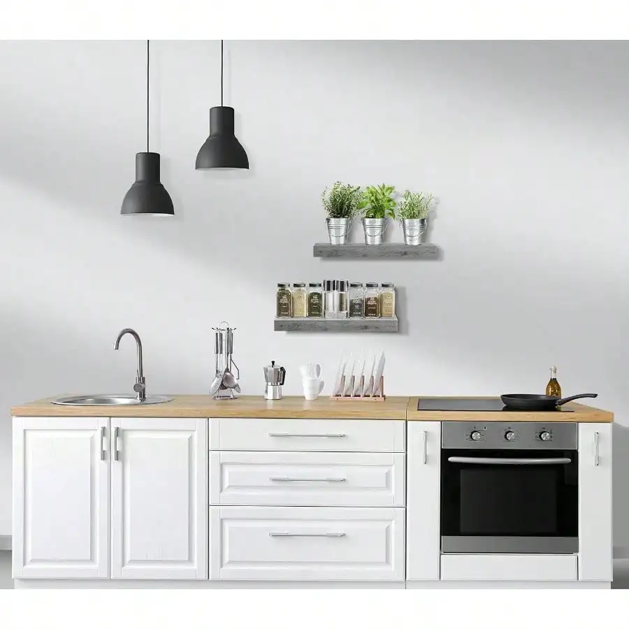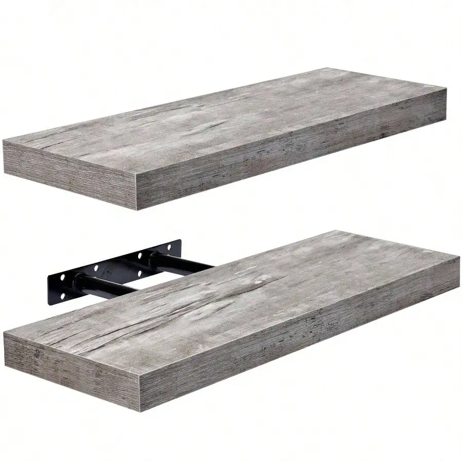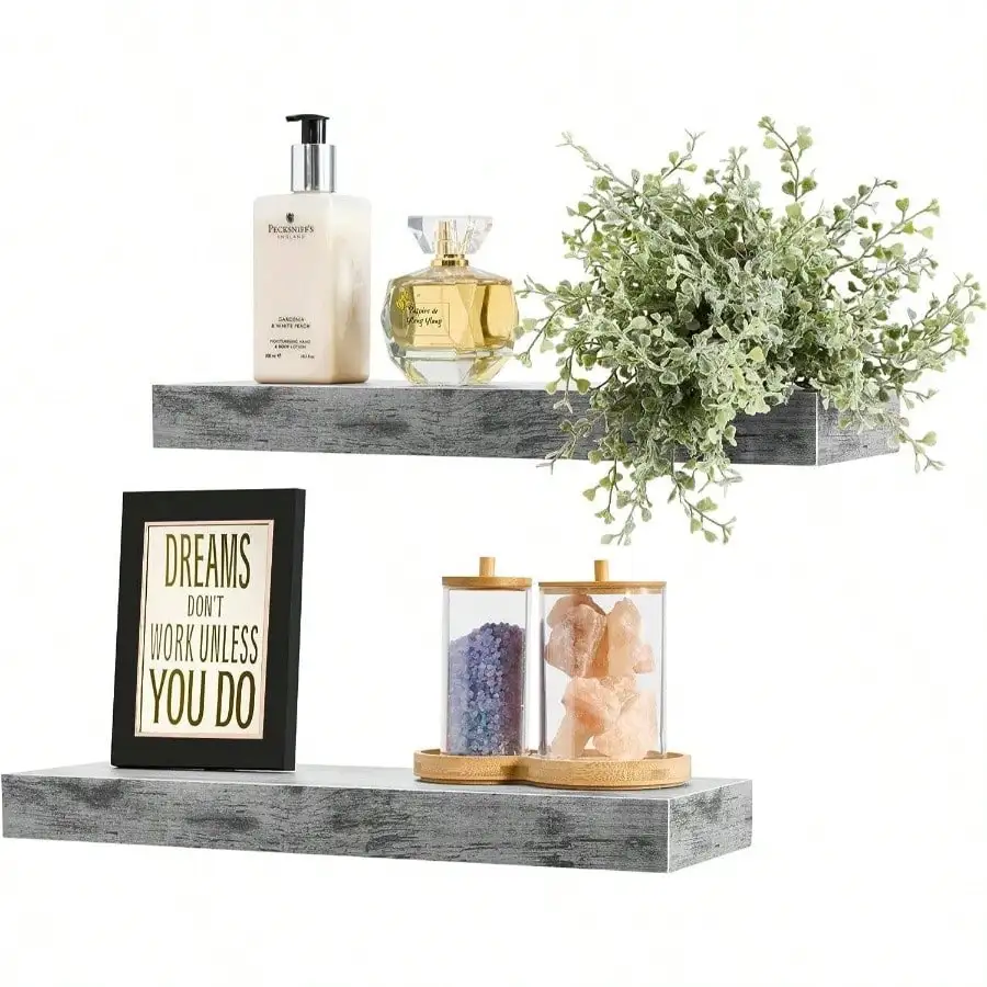 • FLOATING RECTANGLE SHELVES (SET OF 2, GREY ) — Display charming showpieces, decorative items, and other prized possessions while offering functional wall storage