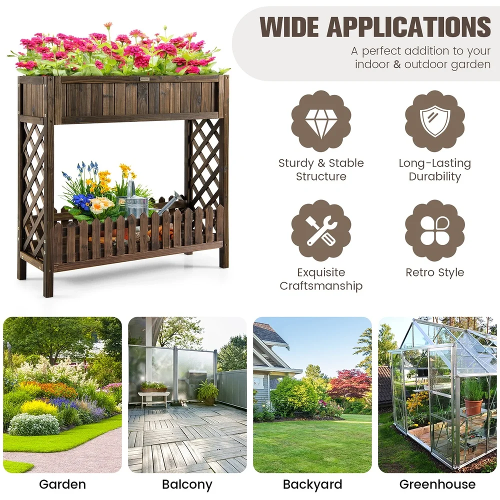 Well-Selected Material & Carbonized Treatment: The wooden raised garden bed is crafted with solid fir wood that is high-hardness and moisture-resistant, ensuring a long service life. Moreover, through the high-temperature carbonization treatment, the planter box showcases a uniform surface and excellent deformation resistance.
