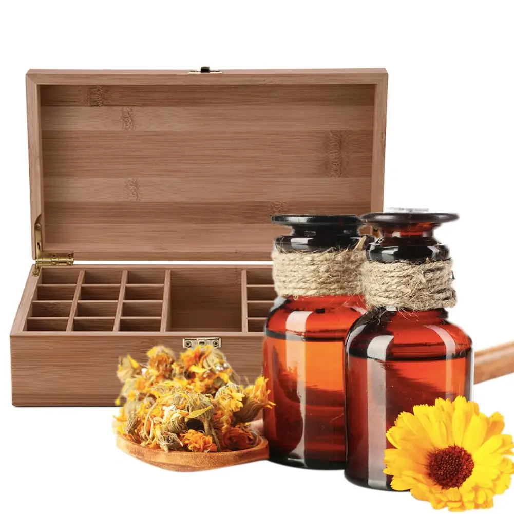 25 Grids Bamboo Essential Oil Storage Box Organizer DIY Protective Wooden Storage Case Travel Perfume Bottles Protect Container