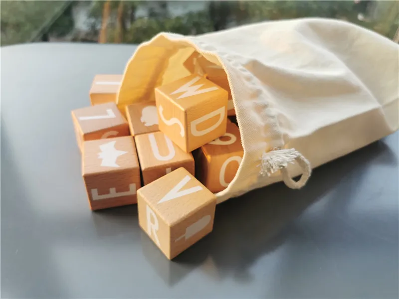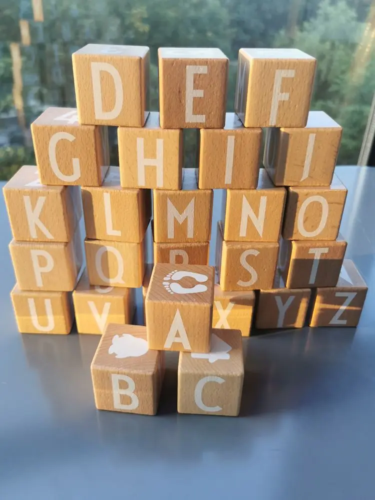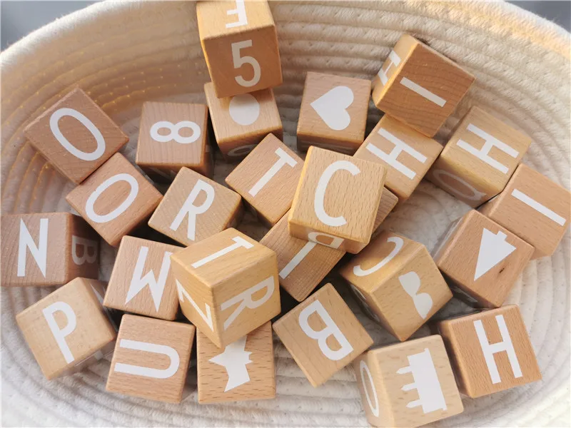 26pcs Kids Montessori Wooden Toys Big Beech Alphabet Blocks Stacking with Letter Numbers Cube Bri...