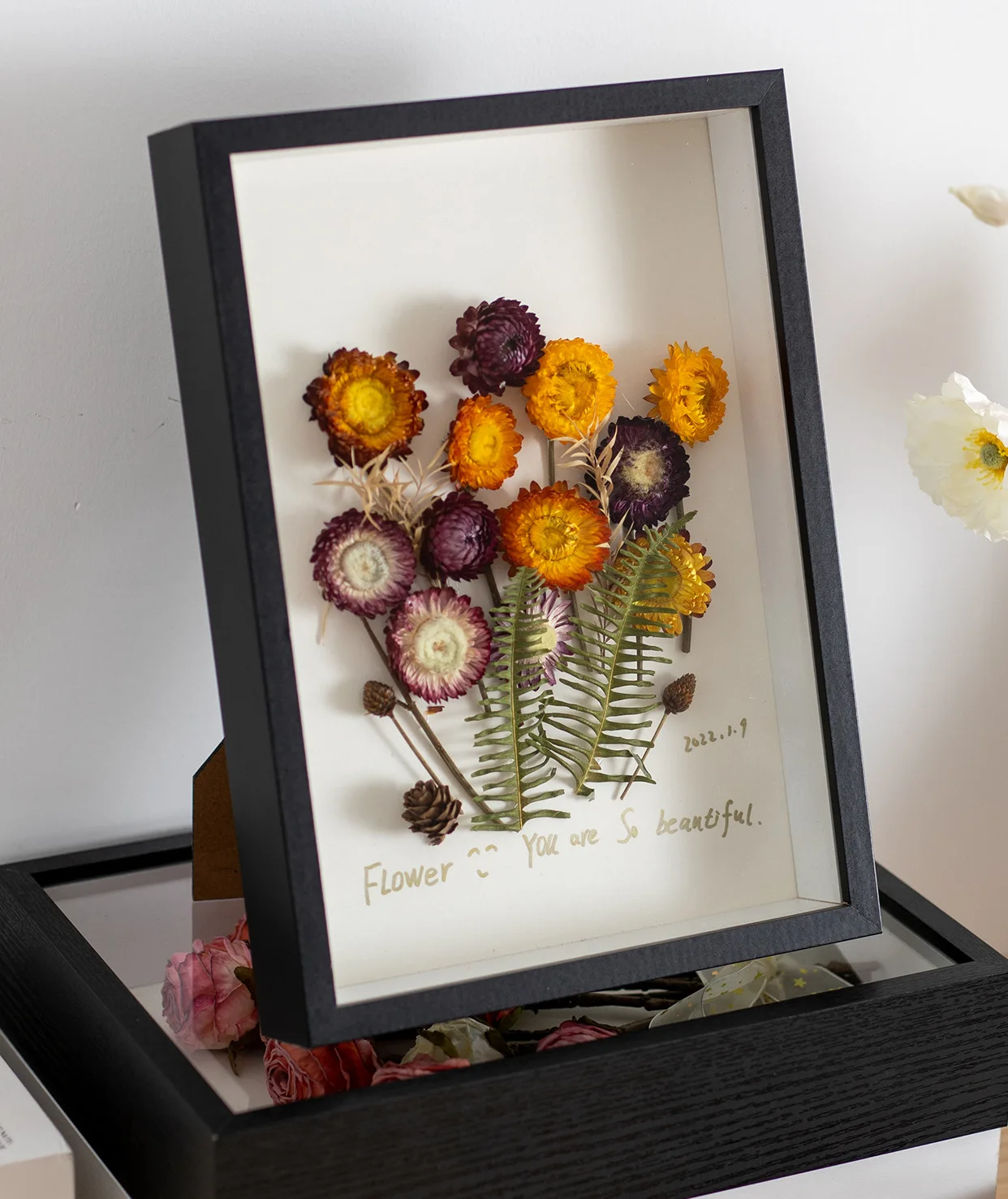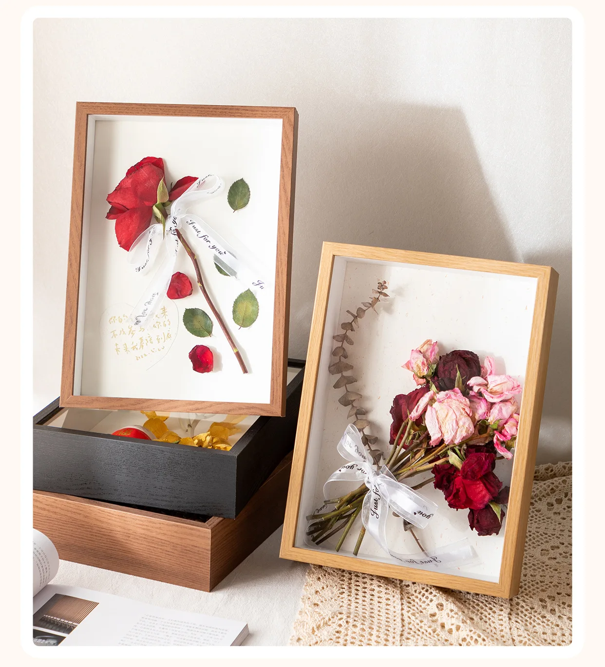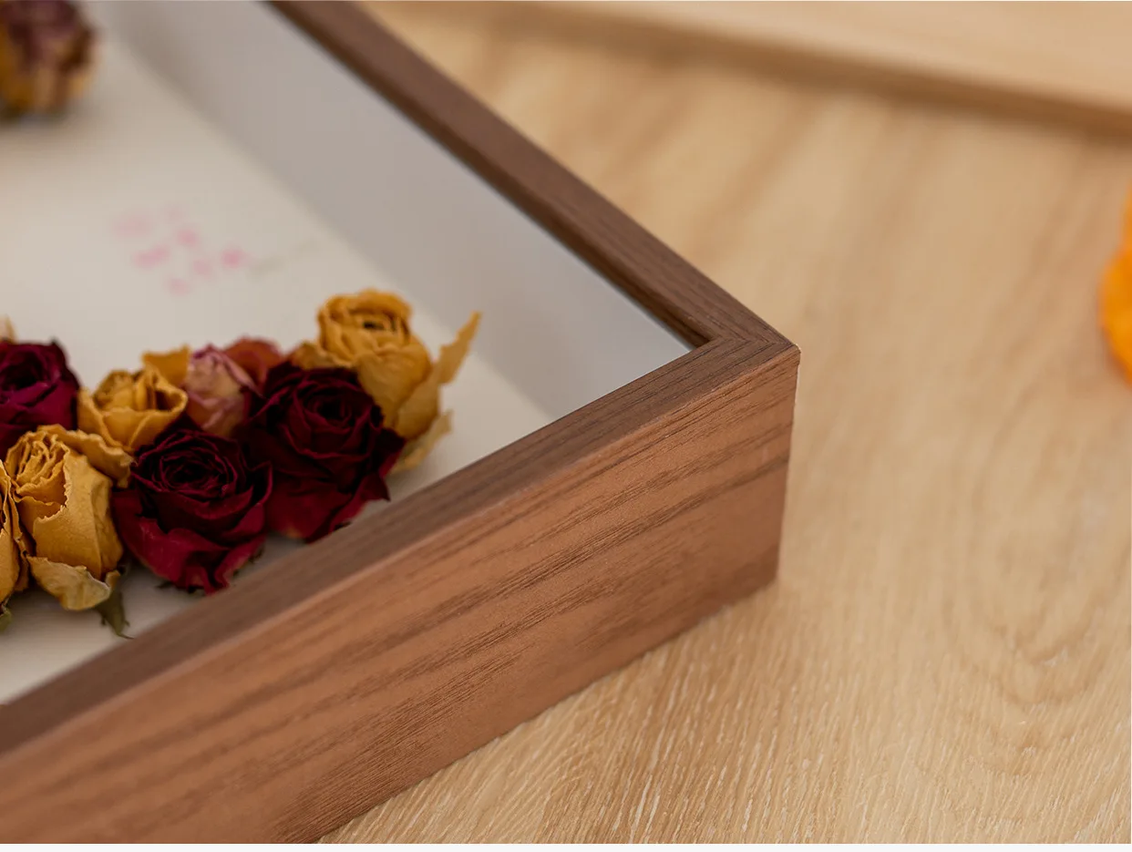 There is a space of 5cm between the wooden board and the glass on the back. Can be put into leaves, dried flowers, insect specimens, watercolor paintings, sketches, shells, DIY handicrafts, three-dimensional dolls, clay.