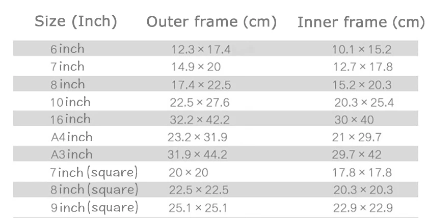 - The photo frame can be placed or hung, but the A3 and 16inch photo frames can only be hung on the wall.