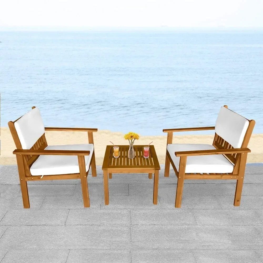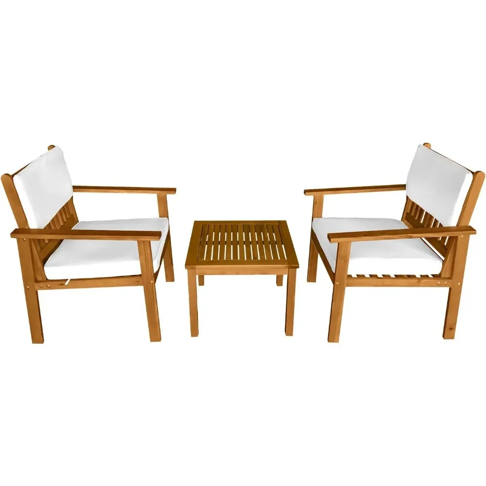 - √【DURABLE WOOD】: This bistro set is made of real Acacia wood with a natural finish. This chat set is solid, strong and durable.This table chair set is Crafted from solid, weather-resistant natural acacia wood for beauty and long-lasting durability.Acacia wood is strong and durable.Resistant to rain, salt, water and chlorine .No splinter, rust, crack, chip or peel. No harmful chemicals is used. Bistro Set Table Chair Set Chat Set.