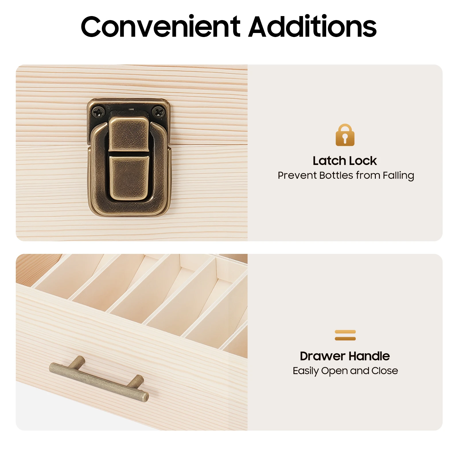 Storage Helper: It is a blessing for essential oil enthusiasts! A drawer and two trays provide a total of 59 slots for neatly storing 0.5-ounce essential oil bottles and 0.3-ounce roller bottles (not included). Arrange essential oils in an orderly manner and be at your service anytime!