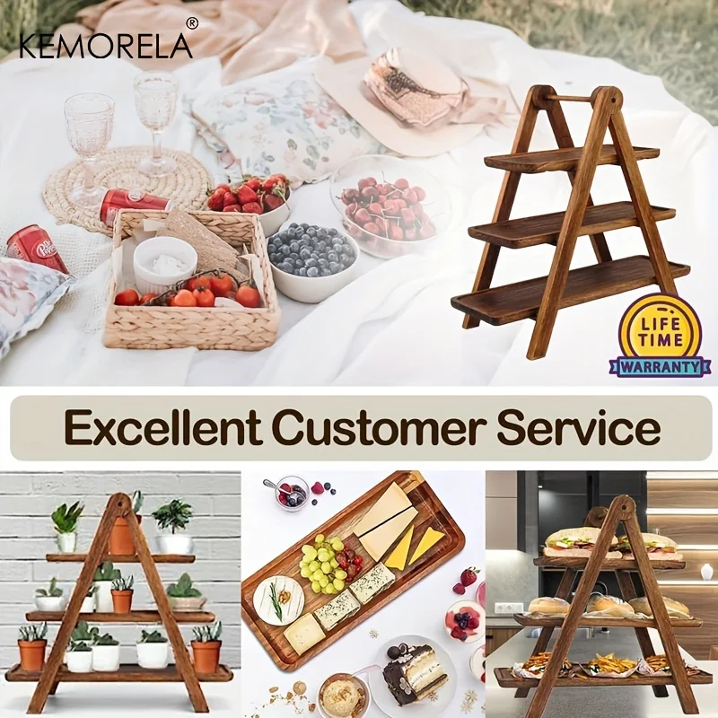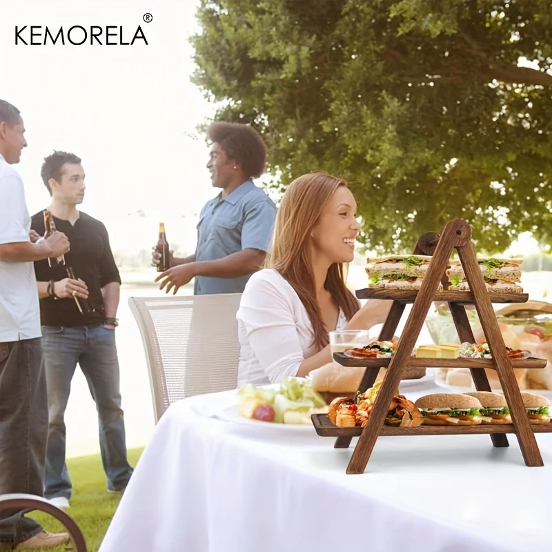 3 Tier Serving Tray Three Tiered Cupcake Stand Rectangle Serving Platter Wooden Tiered Tray Party Serving Brown Decorative Tray
