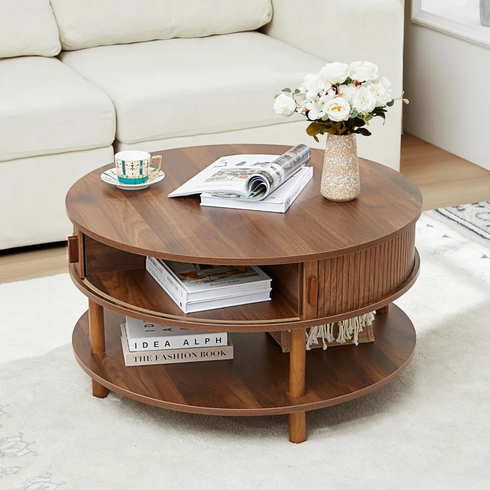 - 2-Tier Coffee Table: This coffee table boasts a spacious round top, measuring 31.5 inches in diameter, perfect for keeping your living room supplies organized and your daily essentials close at hand. The additional 31.5-inch bottom shelf provides ample storage space for magazines and toys, helping you maintain a neat and tidy living space