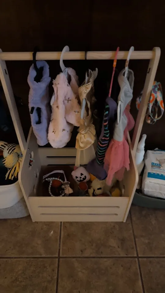 - 【Dual Function】This dog storage organizer provides dual functionality of storage and hanging. You can quick and easy access to stored items, simplifying outfit selection. Compared to other wooden organizers that only provide storage, our dog toy basket comes with a spacious crate and hanging rack, enriching the display form, making it a practical and stylish choice