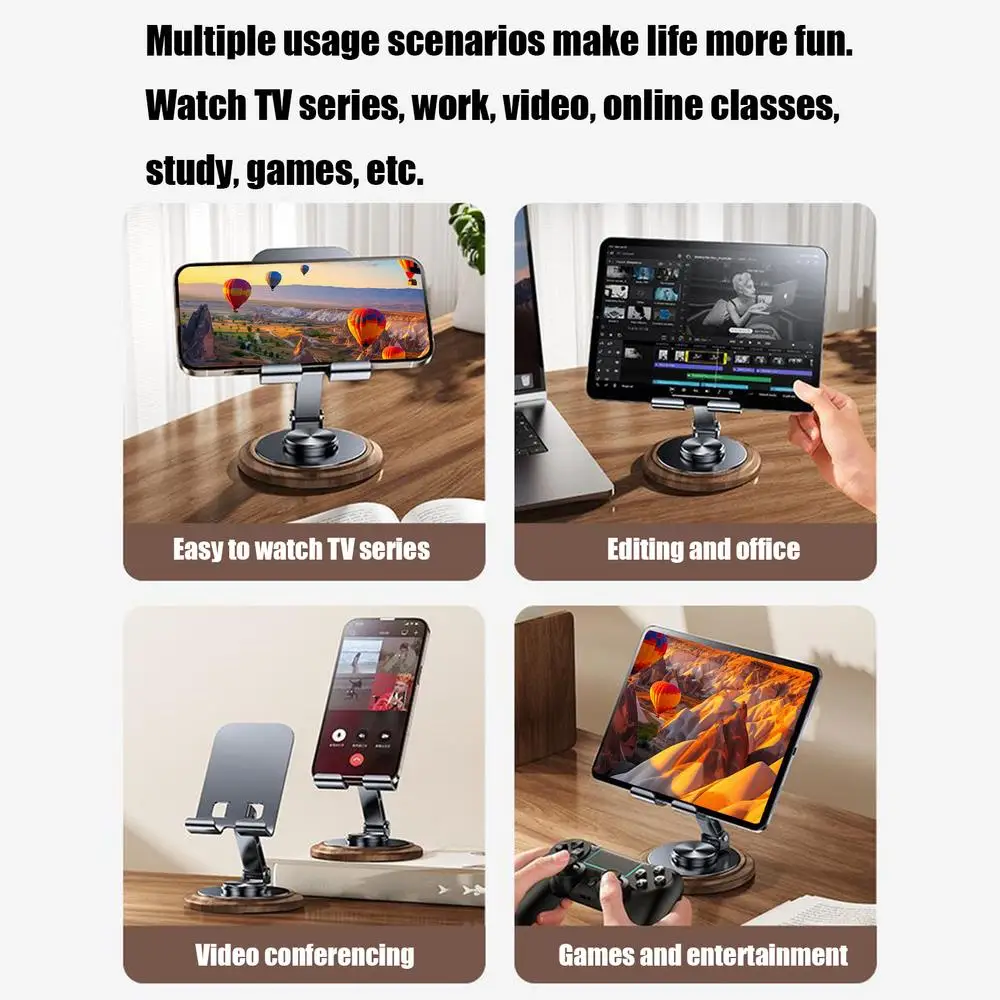 Our metal and walnut design phone holder is 360° rotatable, making it perfect for watching movies and enhancing your experience.