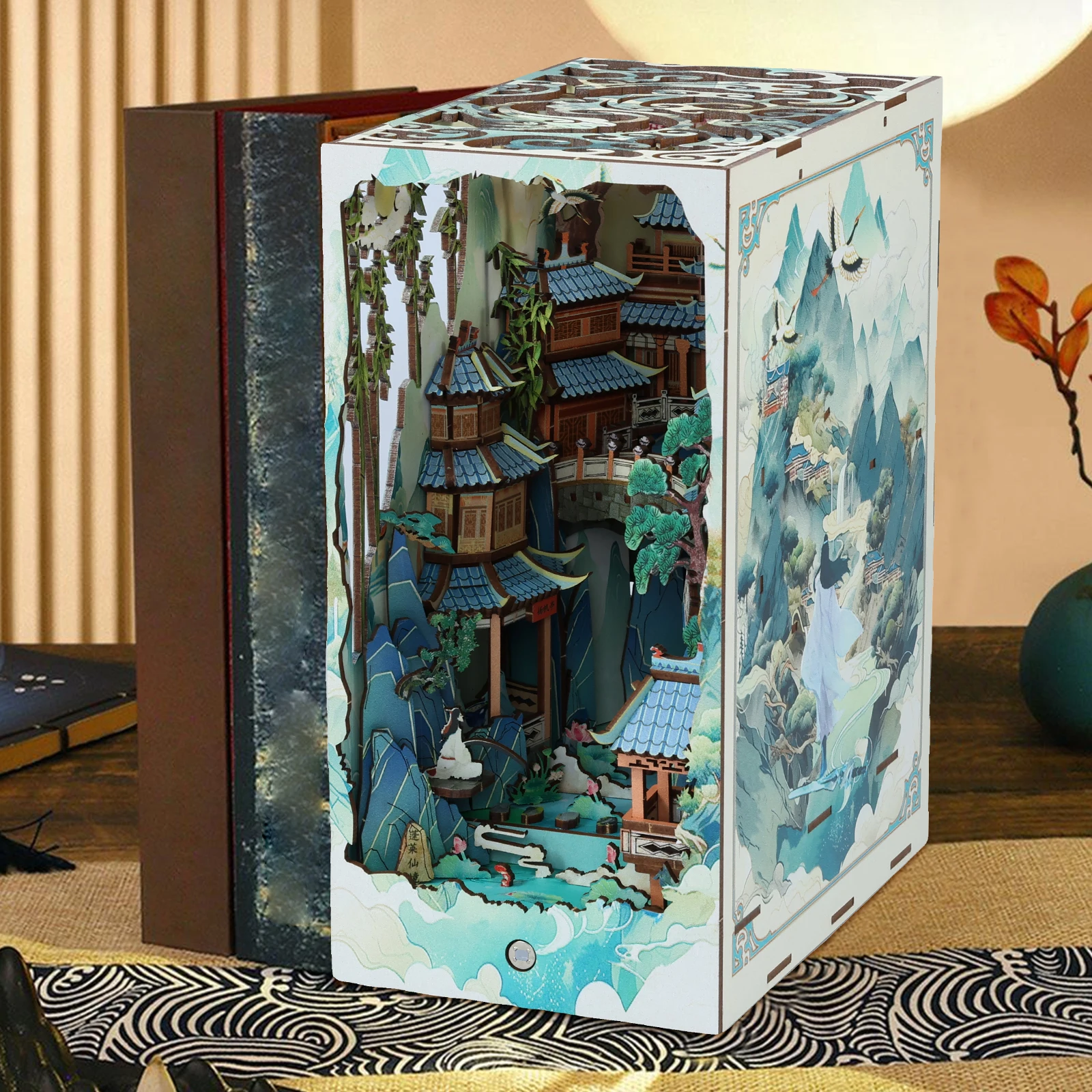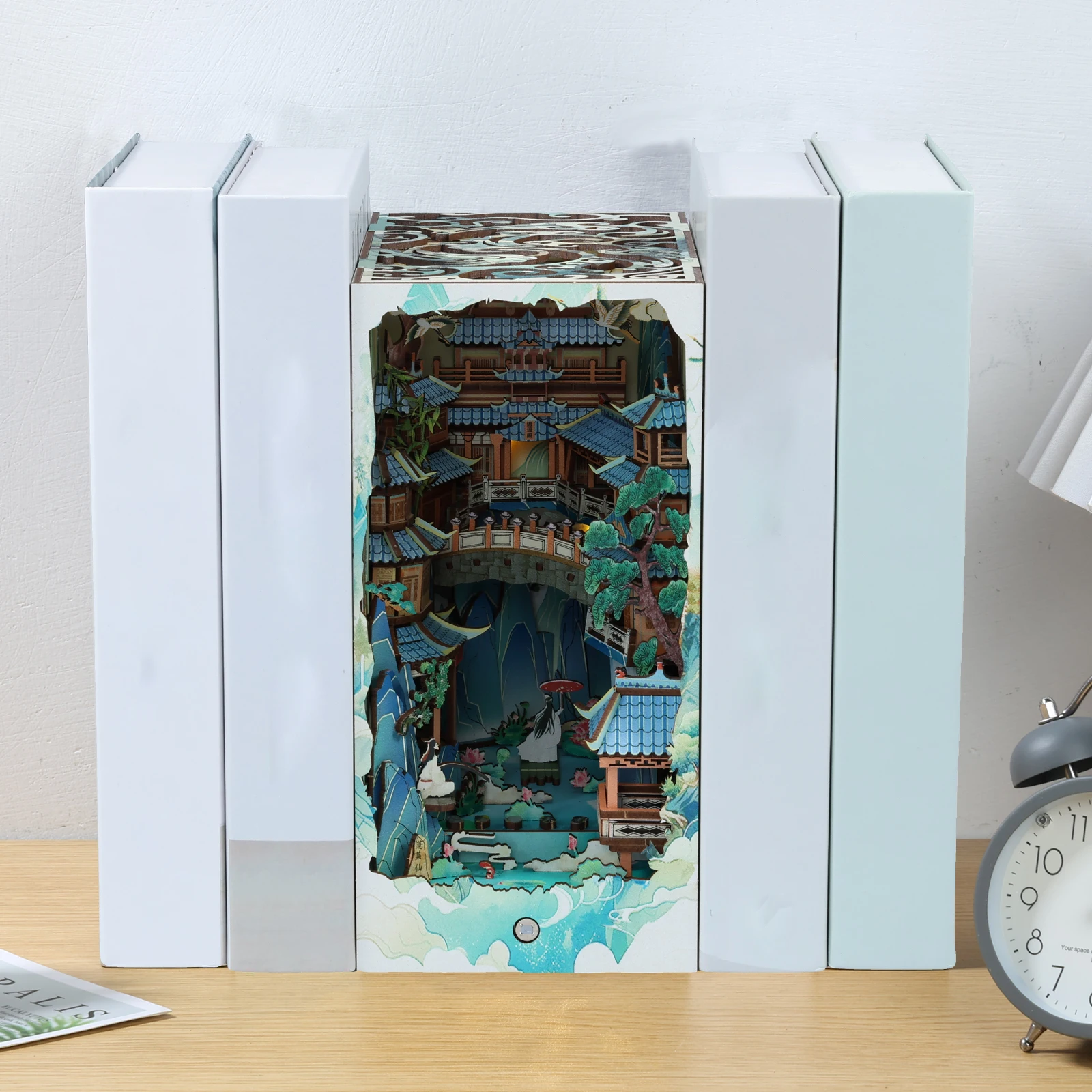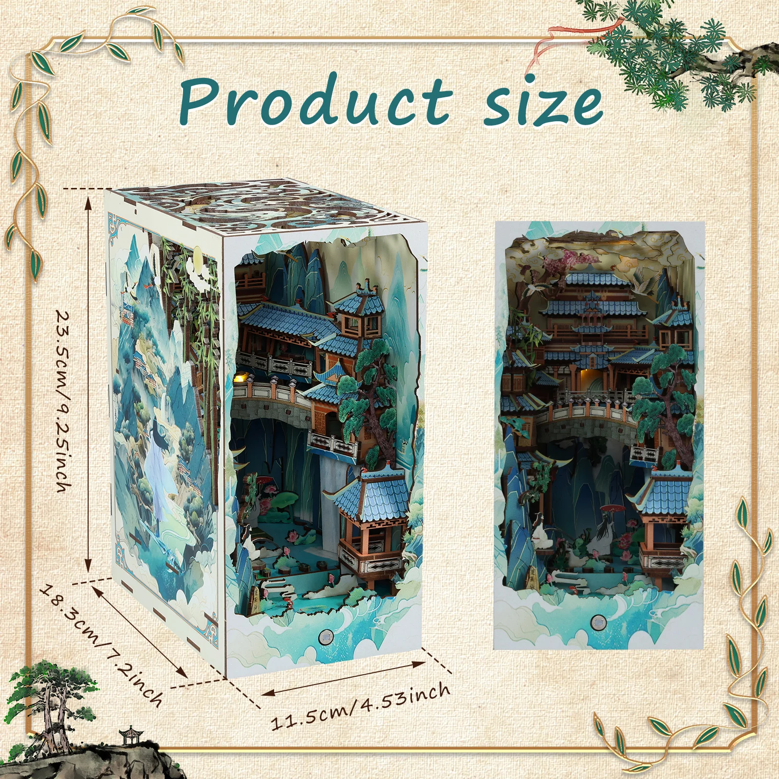 [3D Wooden DIY Book Nook] The Book Nook kit contains the parts to be assembled, not the finished product. Have fun assembling it. This 3D dollhouse booknook consists of many small parts that need to be matched precisely. It helps to develop logical thinking and exercise hands-on skills