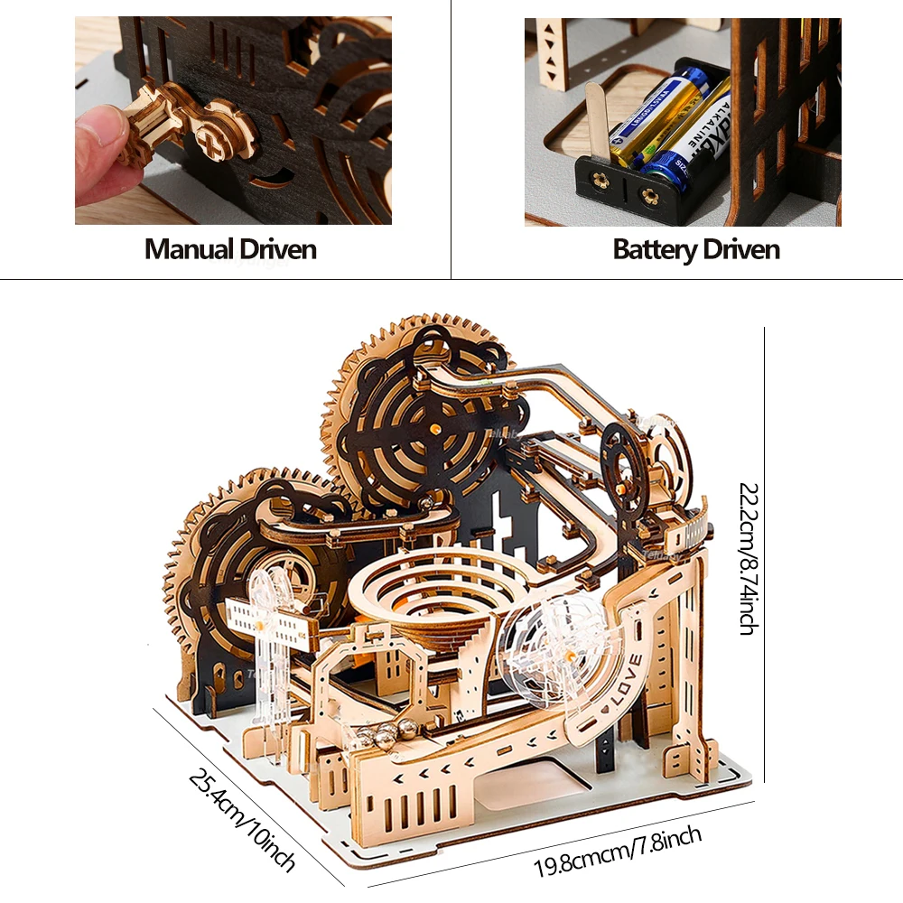 3D Wooden Puzzle Building Model Kit Electric Motorized Marble Run STEM Educational Construction Toys for Kids Adults Gifts