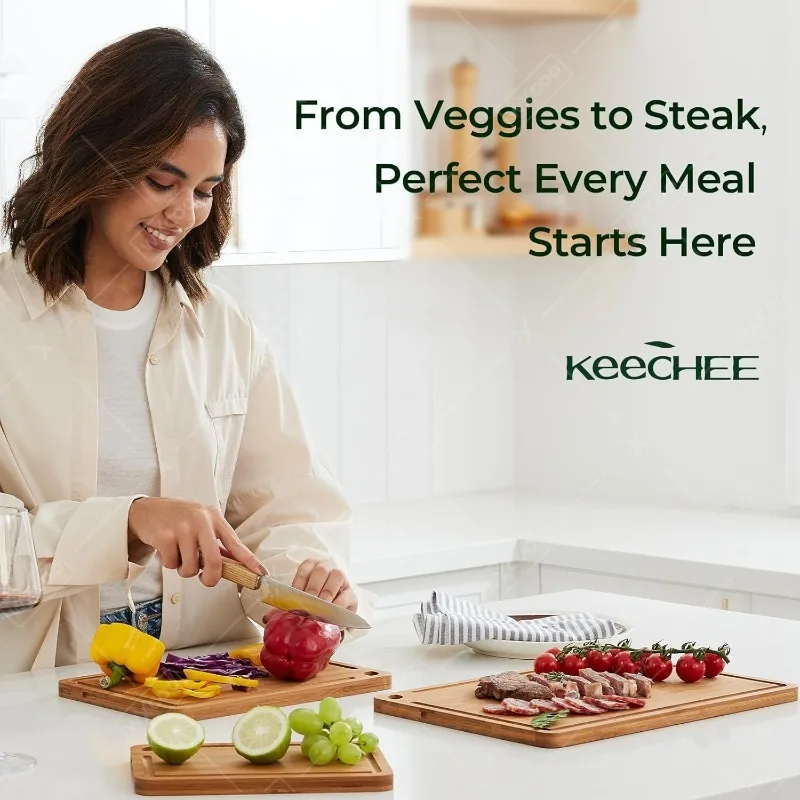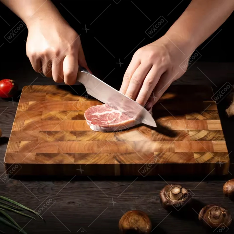 Still looking for a cutting board that is both beautiful and practical? WXCOO cutting board is the ideal choice for you! The unique structure has excellent durability and can withstand heavy cutting without being easily damaged. Its "self-healing" property makes every cut as smooth as silk. The blade cuts between the wood fibers and the fibers quickly close after leaving, keeping the knife sharp as new.