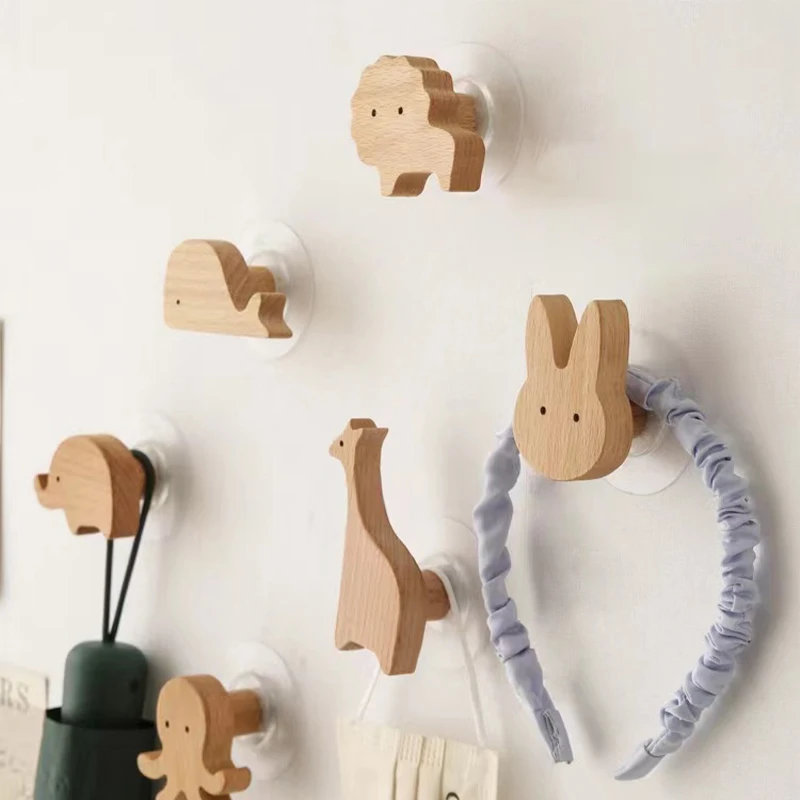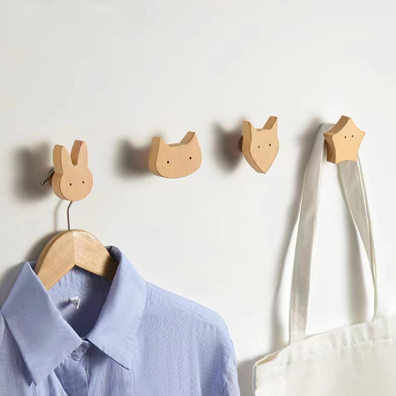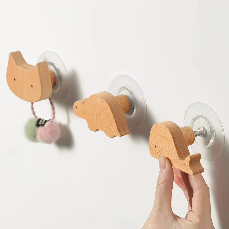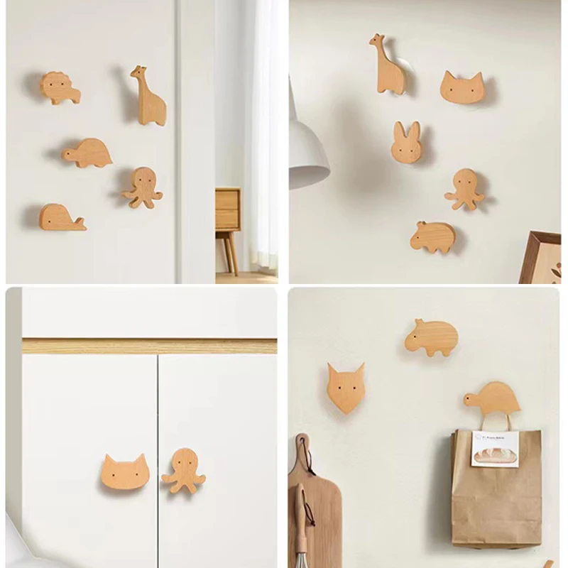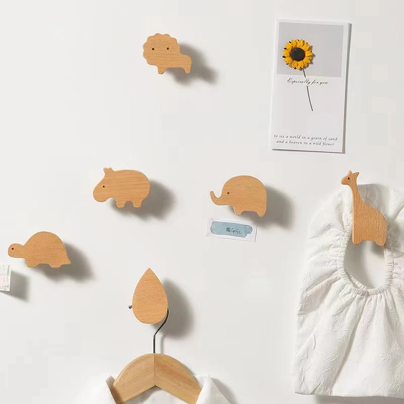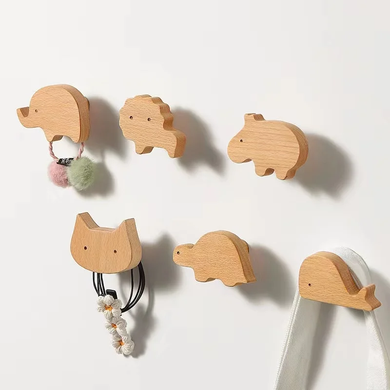 Wooden Animal Hooks Organization Wall Hanging Clothes Storage Hook Home Door Hanger Solid Wood Hook Kitchen Accessories Rack