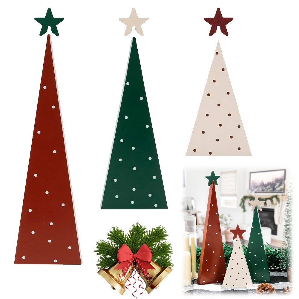 3Pcs Wooden Christmas Tree Ornament Detachable Star Xmas Trees Tabletop Decorations for Fireplace Farmhouse Decoration