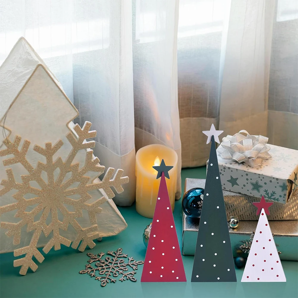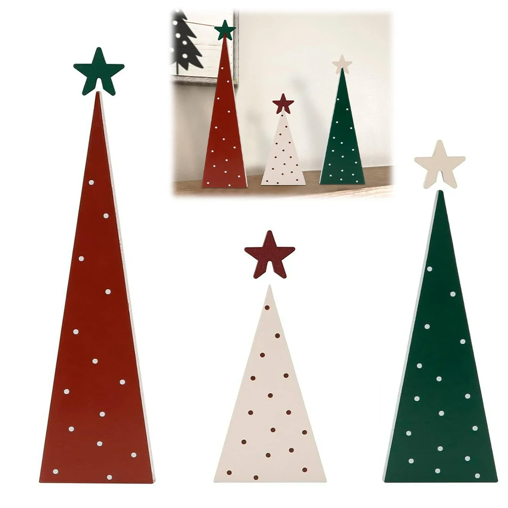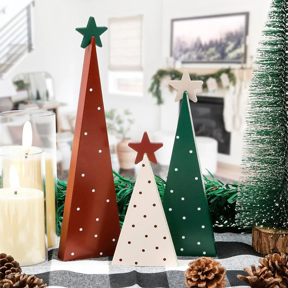 3Pcs Wooden Christmas Tree Ornament Detachable Star Xmas Trees Tabletop Decorations for Fireplace Farmhouse Decoration