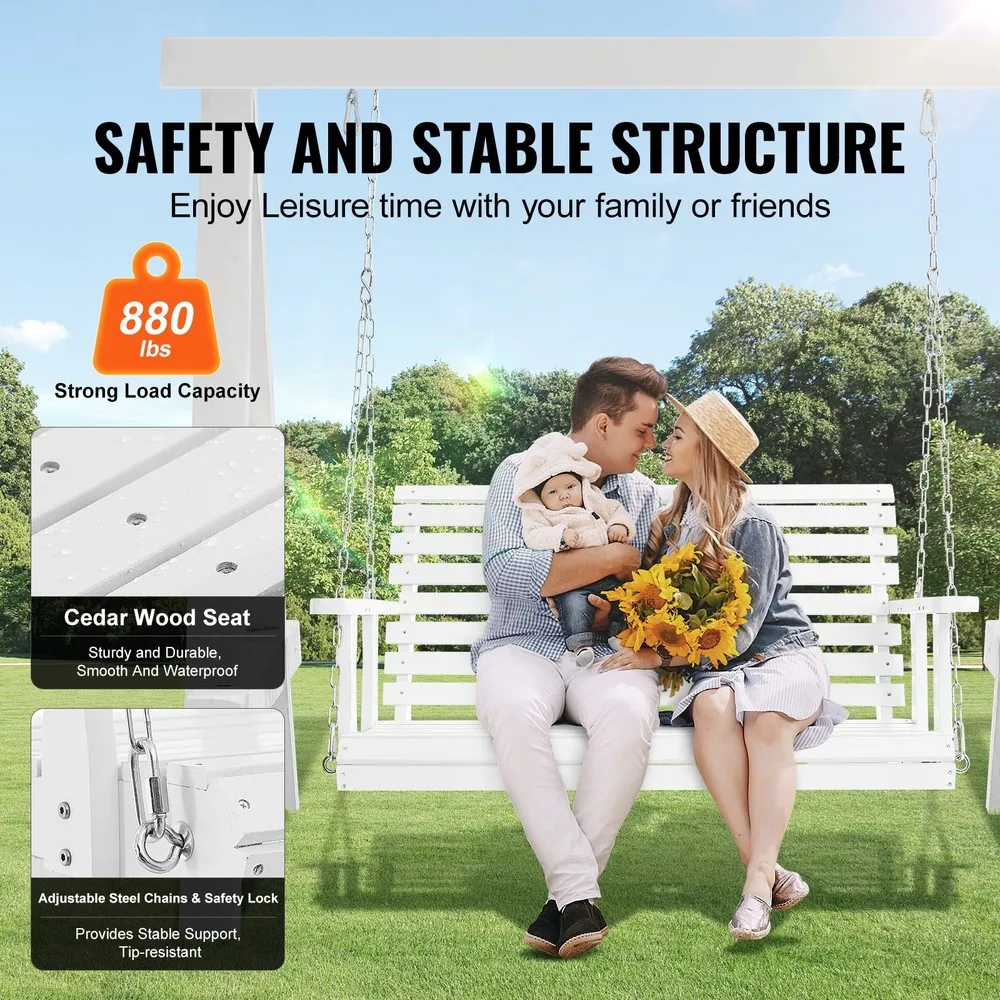 Sturdy & Stable: Crafted from pure fir wood and supported by galvanized steel chains, our porch swing ensures durability and stability. With a weight capacity of up to 880 pounds, it's built to last and remains steady throughout use.