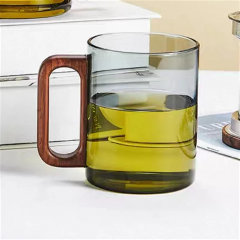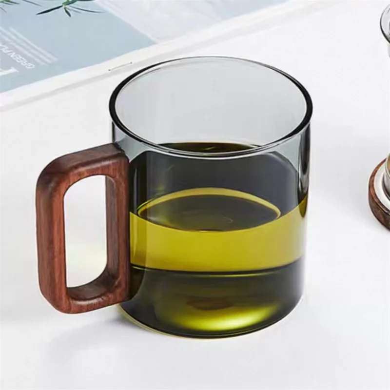400ml High Borosilicate Glass Coffee Mug With Walnut Wooden Handle Heat-Resistant Tea Mug Breakfast Milk Coffee Cups and Mugs