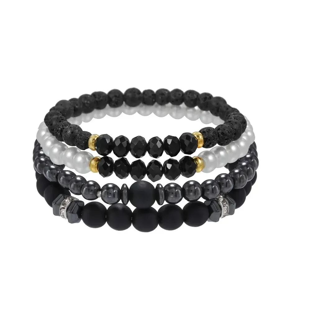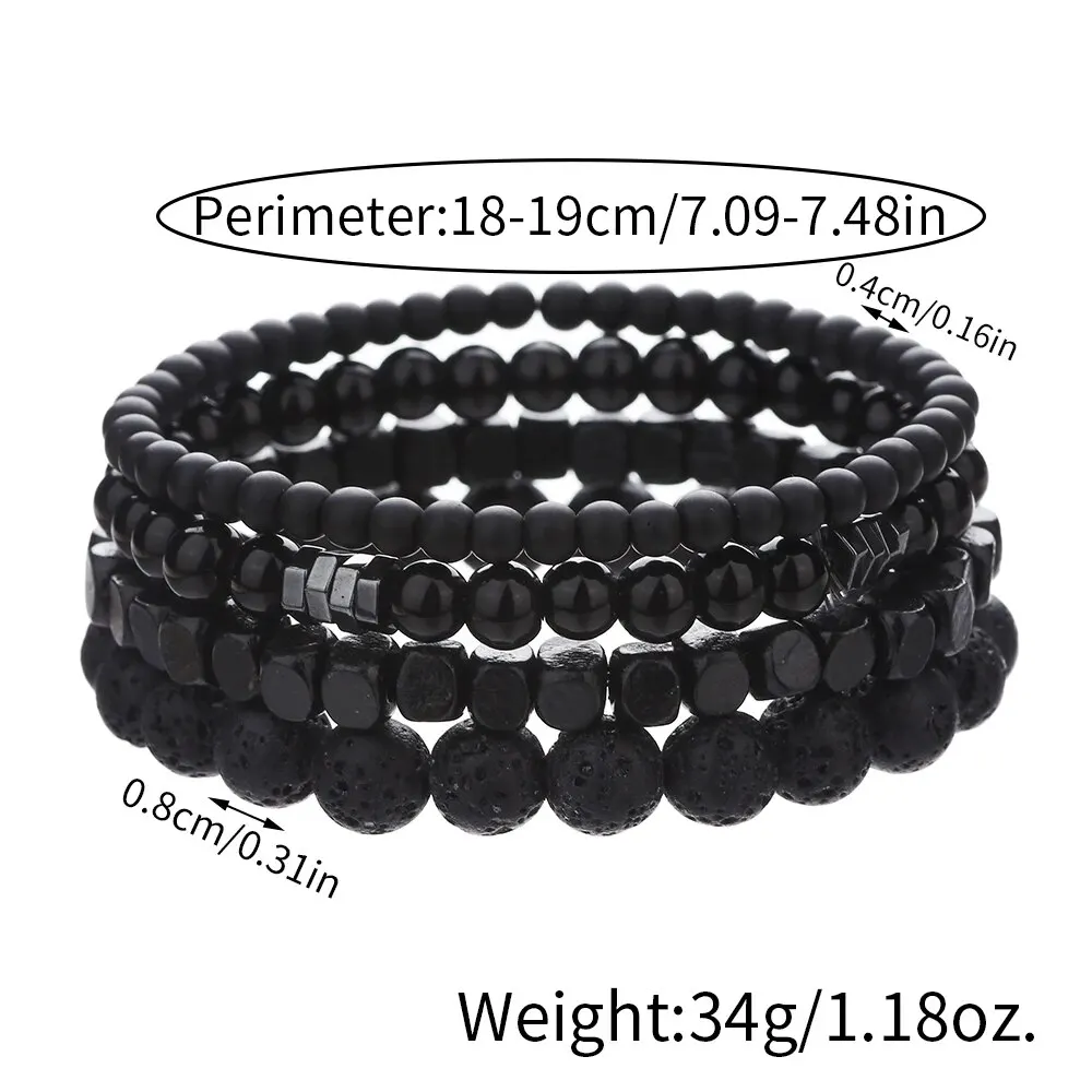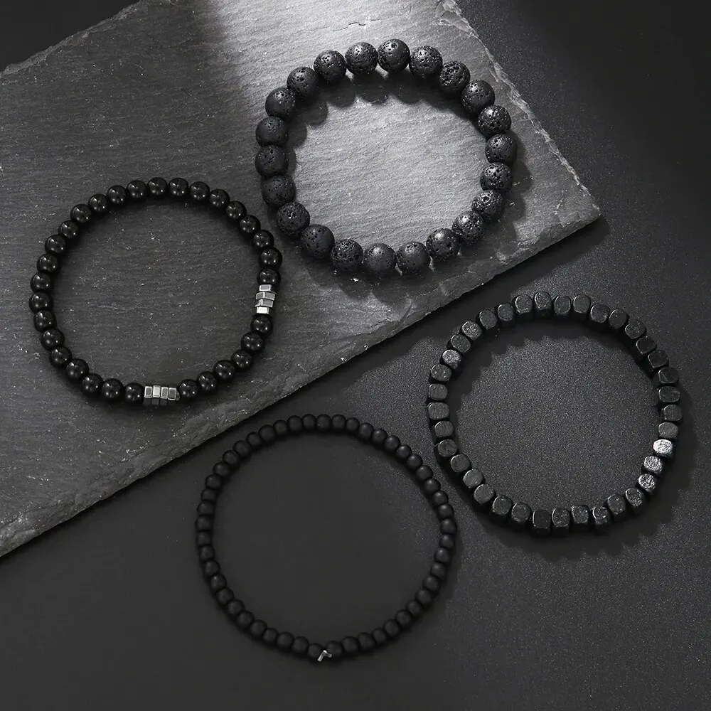Four Piece set Black Gall Stone Volcanic Stone Wood Beads Multi-layer Men's Bracelet Combination Elastic Bracelet