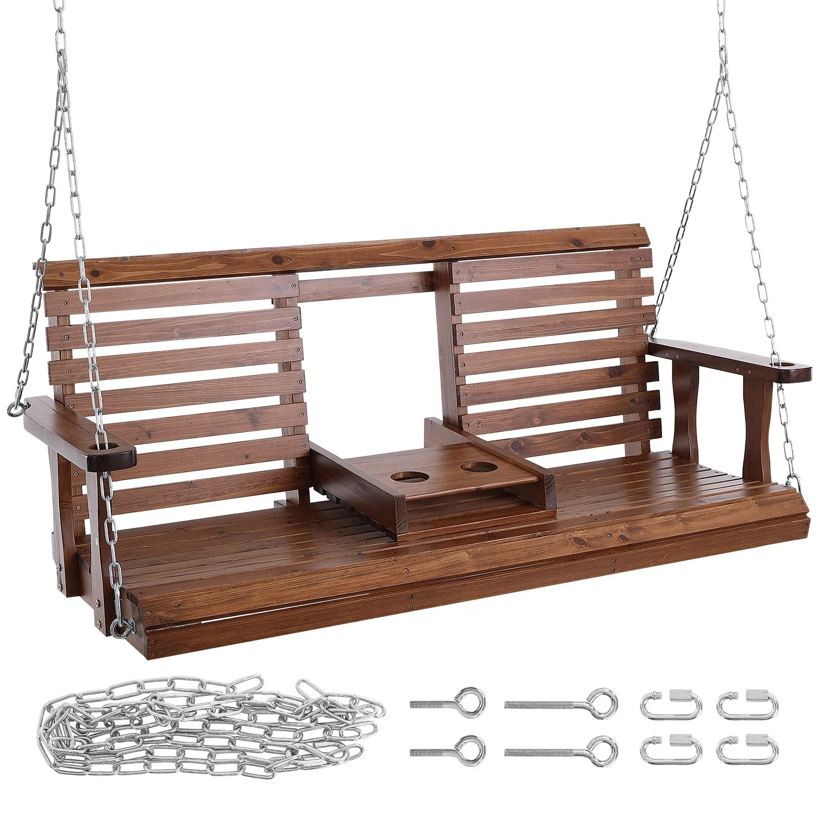 Comfortable Enjoyment: Our porch swing is ergonomically designed with a reclined backrest for knee relief. It features a foldable cup holder in the middle, allowing you to conveniently store beverages without taking up seating space when not in use. Adjustable steel chains with safety lock ensure stable suspension for a cozy and relaxing swing experience.