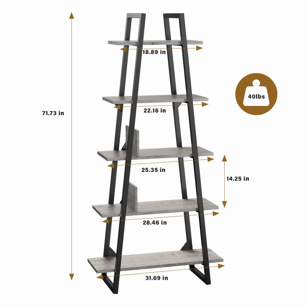 【Industrial Design Style】 The ladder bookcase is a perfect combination of metal and wood, the industrial wood finish adds character while the minimalist metal frame enhances its modern feel. This design complements a variety of furniture styles and ensures an attractive visual aesthetic without being monotonous