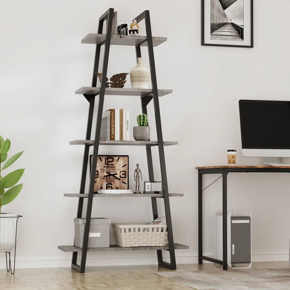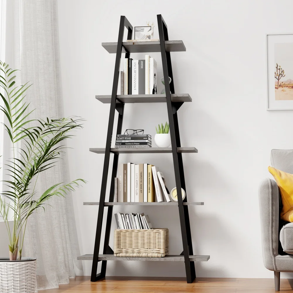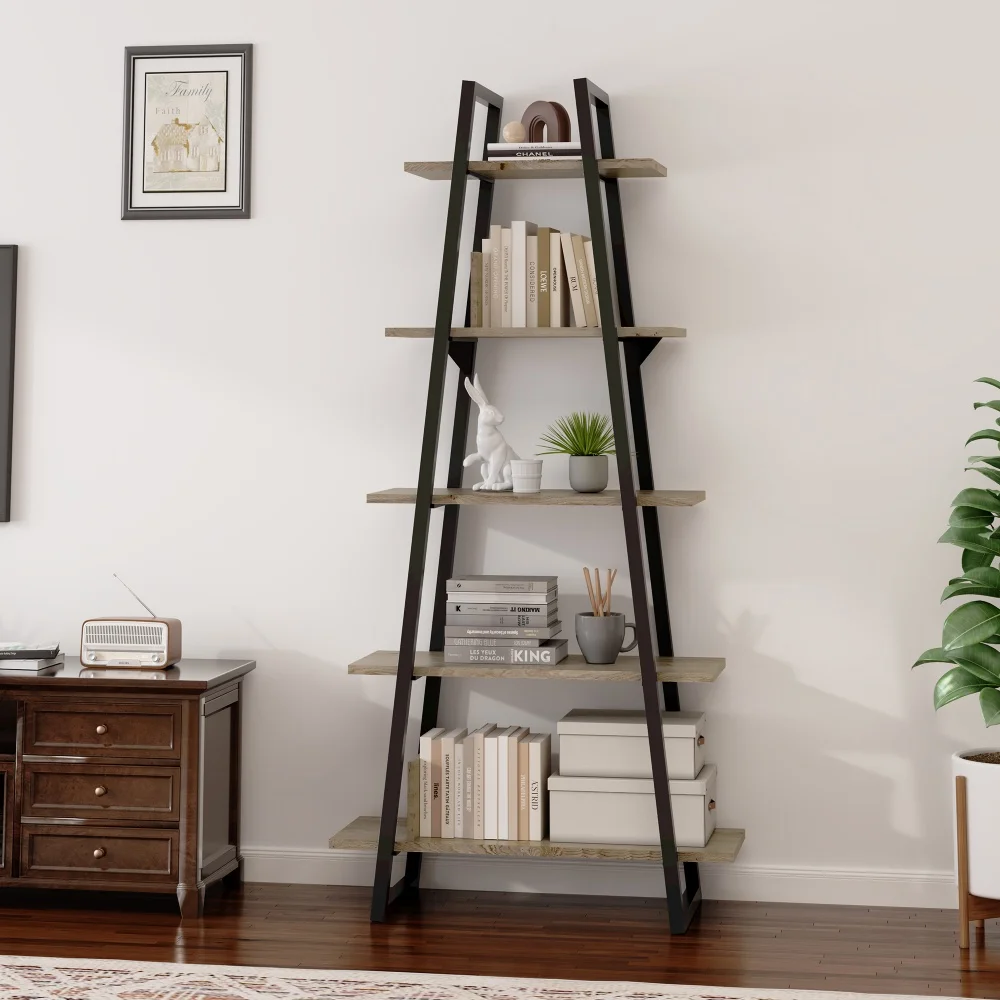 【Sturdy and Durable】Wooden bookshelves use thick metal frames and wooden shelves to form a trapezoidal design that is narrow at the top and wide at the bottom, which enhances the stability of the high ladder bookshelf and reduces the risk of collapse.X-shaped reinforcing bars are designed to provide additional support and each bookshelf can hold up to 100 lbs.