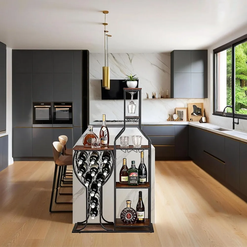 - Multifunctional Storage: Besides wine and liquor storage,it also has a hanging wineholder,a wine rack that can hold multiple wine glasses.There are also open shelves for bar accessories like wine openers and corks,making it a comprehensive bar organizer.