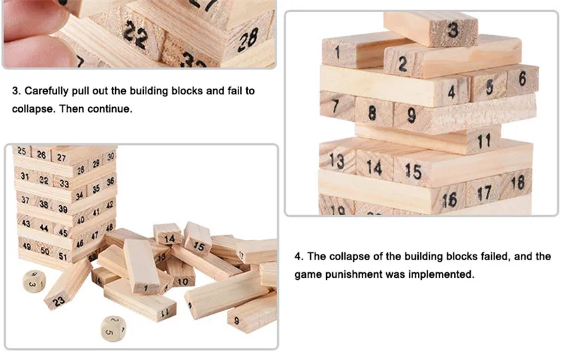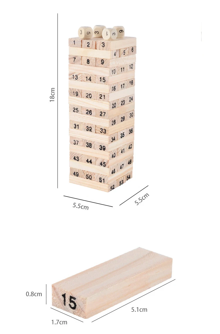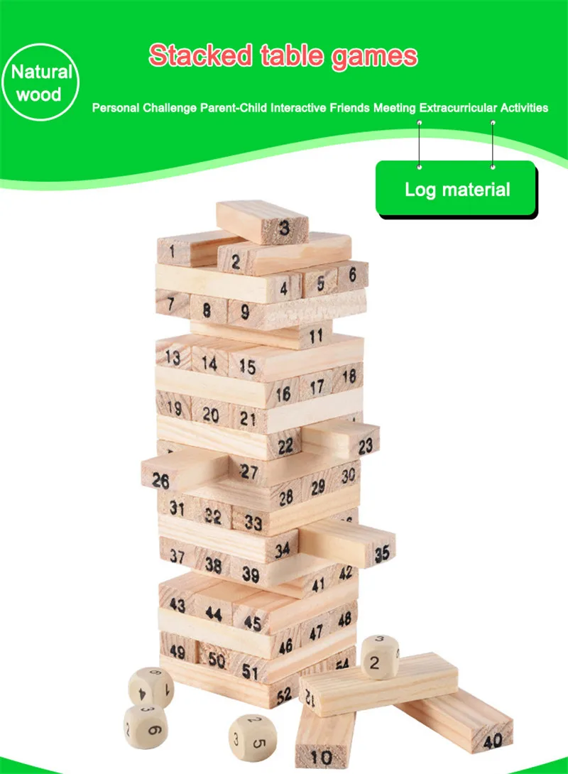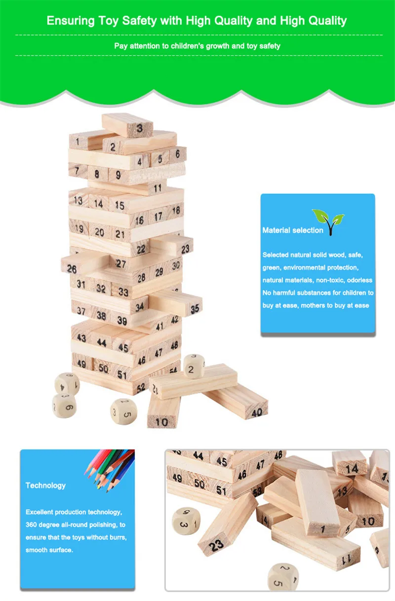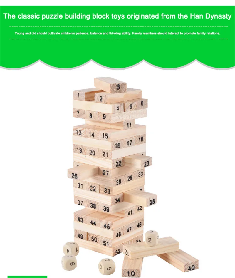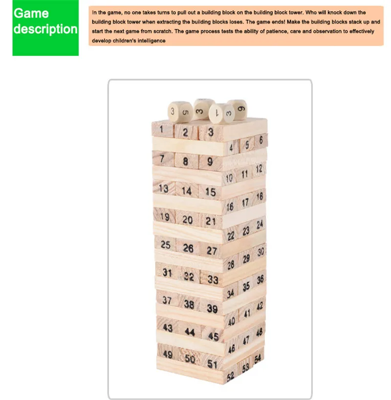 54PCS Wooden Stack High Game Blocks Toy Classic Balance Brain Game Toy Intelligence Educational toys For Kids Children Boy Gift