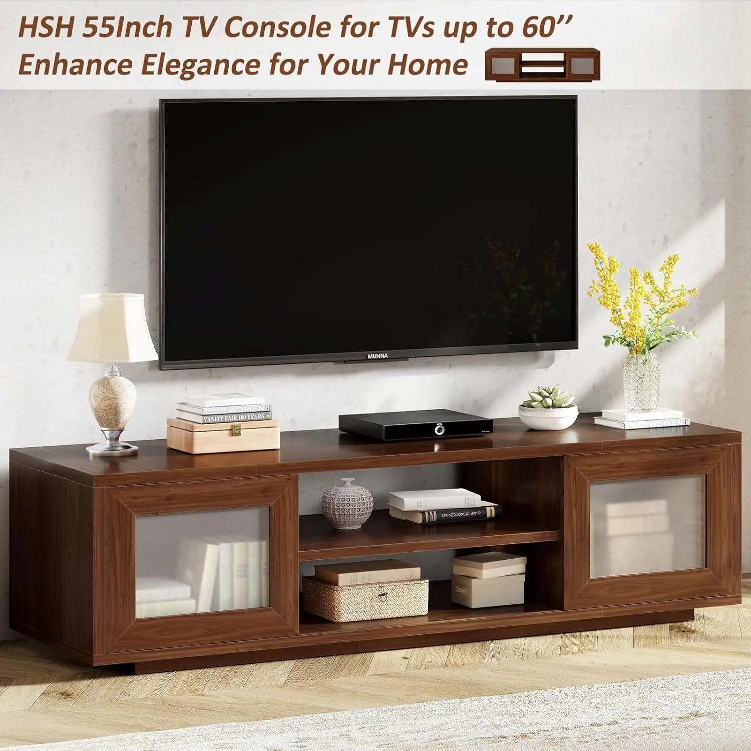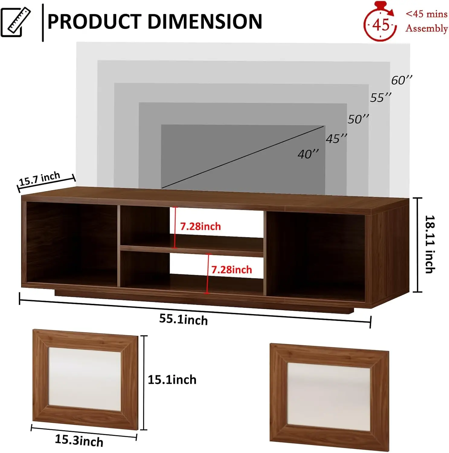 • 【Spacious Design for Large TVs】 The large Walnut Wood TV Console measures 55.1" L × 15.7" W × 18.1" H and supports flat screen TVs up to 60 inches. Its wide TV console top provides ample space for both your television and decors in your farmhouse living rooms, bedrooms, or entertainment areas.