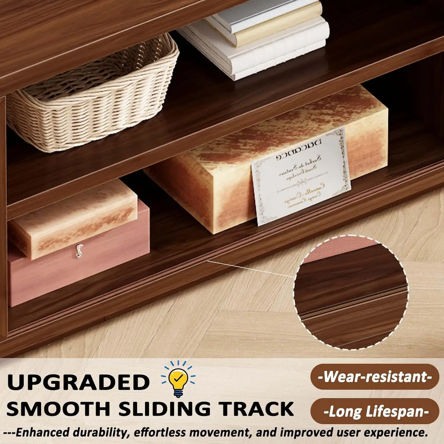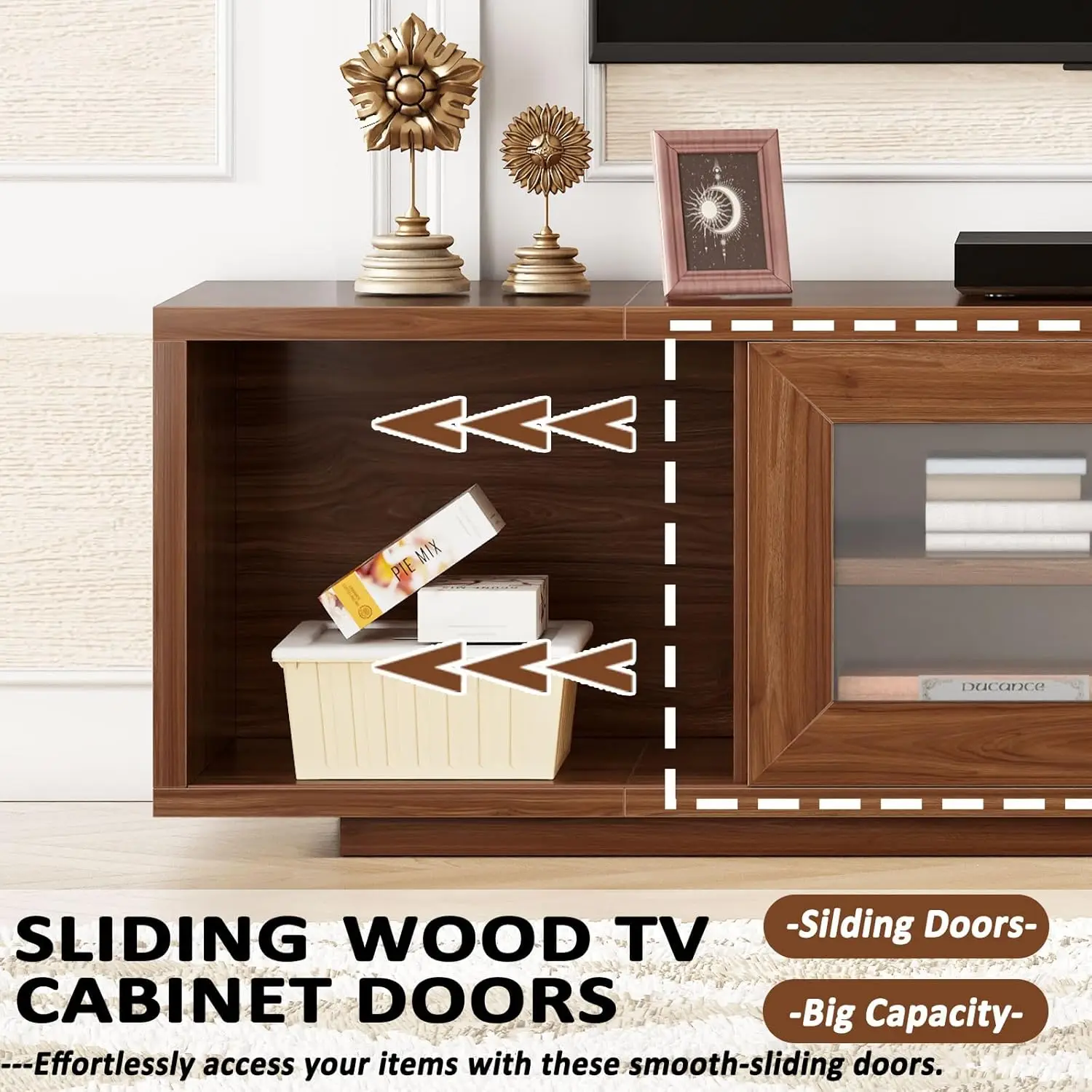 • 【Elegant Sliding Door】 The Wooden Media Console features frosted sliding doors that add elegance while protecting privacy and hiding clutter. The sliding design keeps items free to take and ensures easy access to media devices and accessories.
