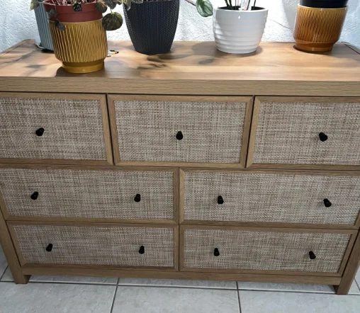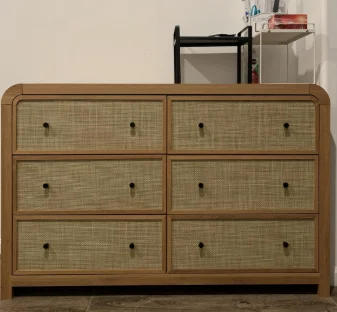 I’m absolutely in love with this oak&sparrow 6 drawer dresser! The quality exceeded my expectations—the rattan detailing gives it that perfect boho vibe, and the thickened curved design makes it look way more expensive than it actually is. It feels really solid and well-made, not flimsy at all.