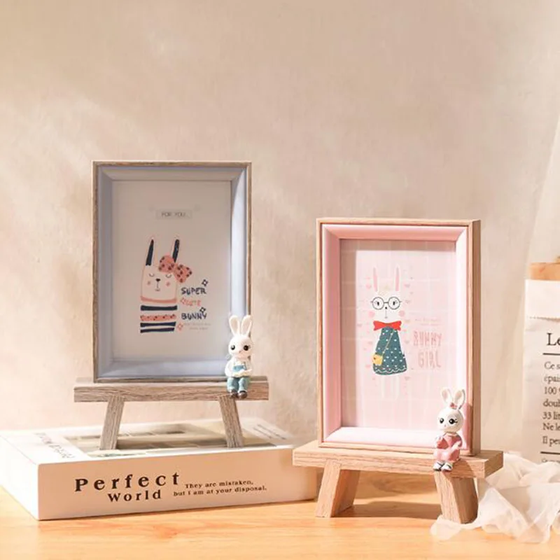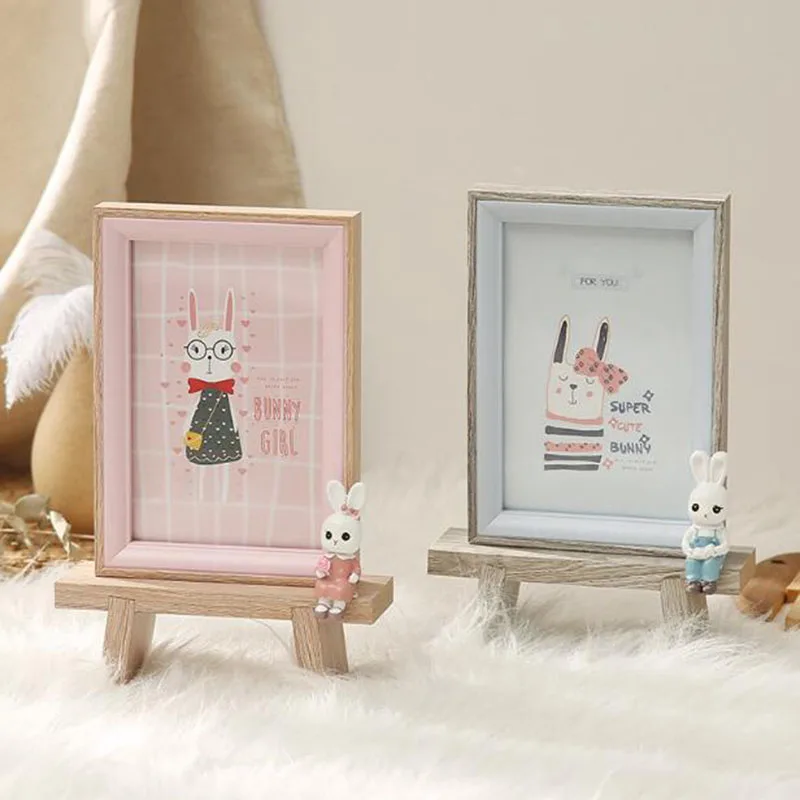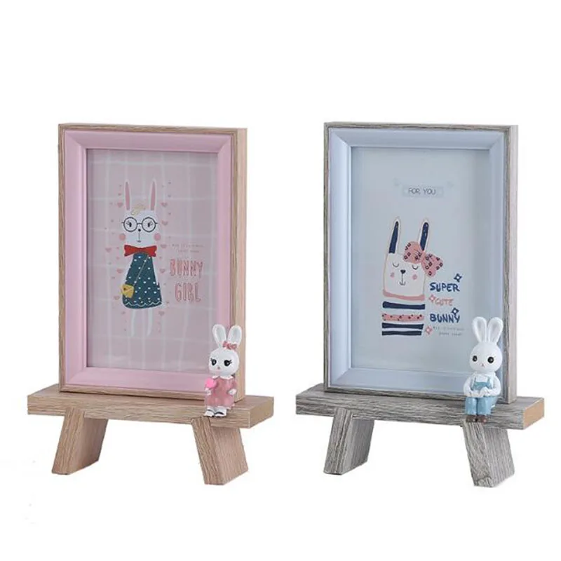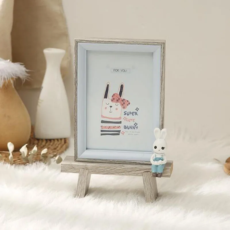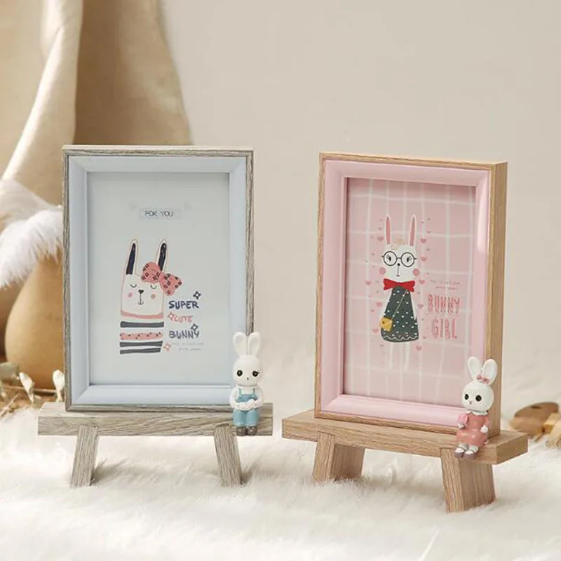 6 Inch Creative Cartoon Wooden Photo Frame Children Family Photo Decorated Holder Desk Display Picture Frame Home Decor