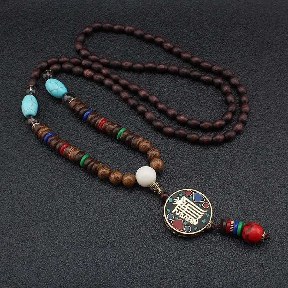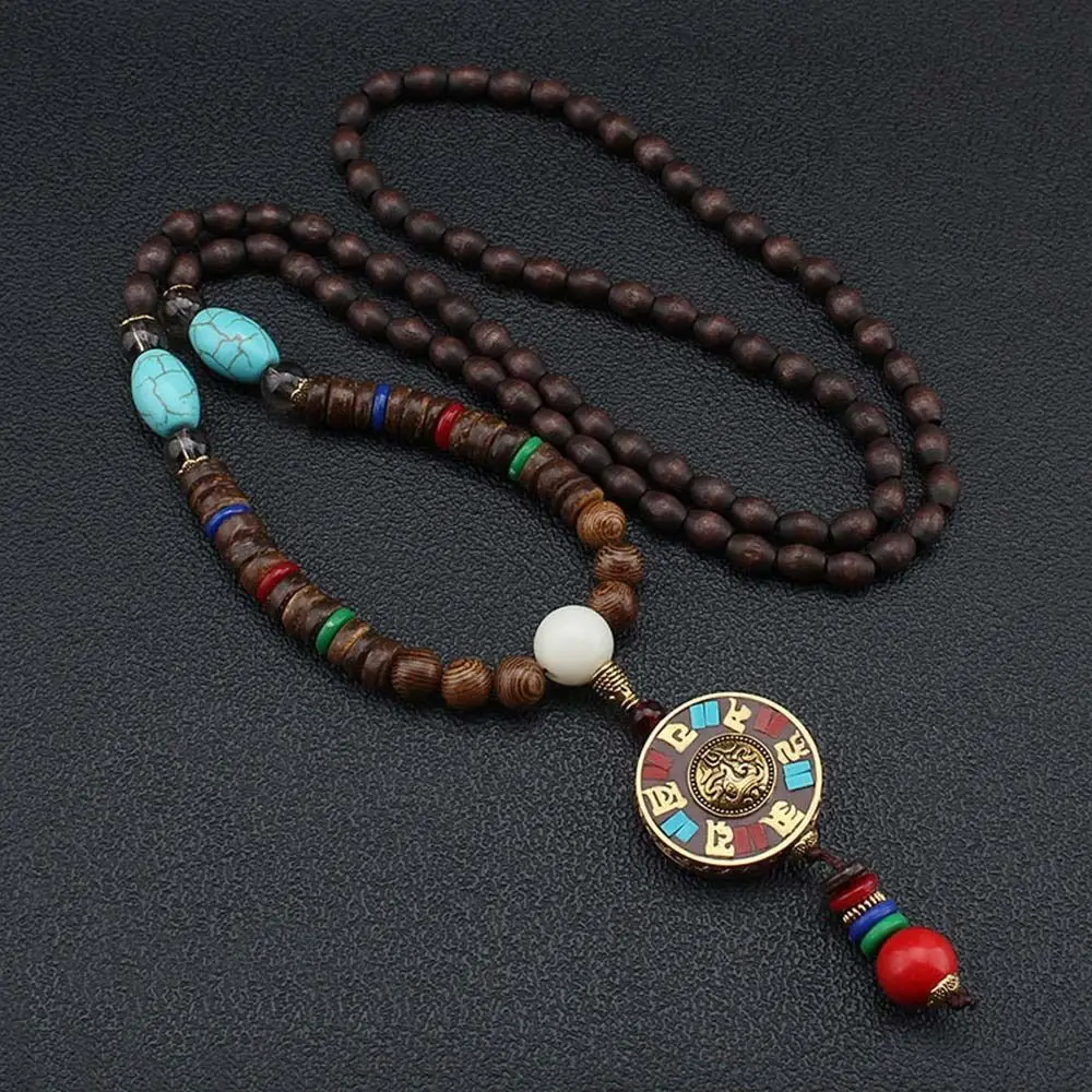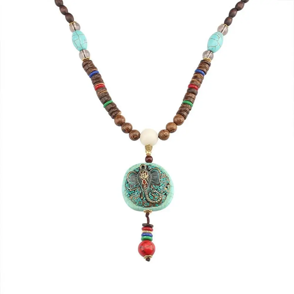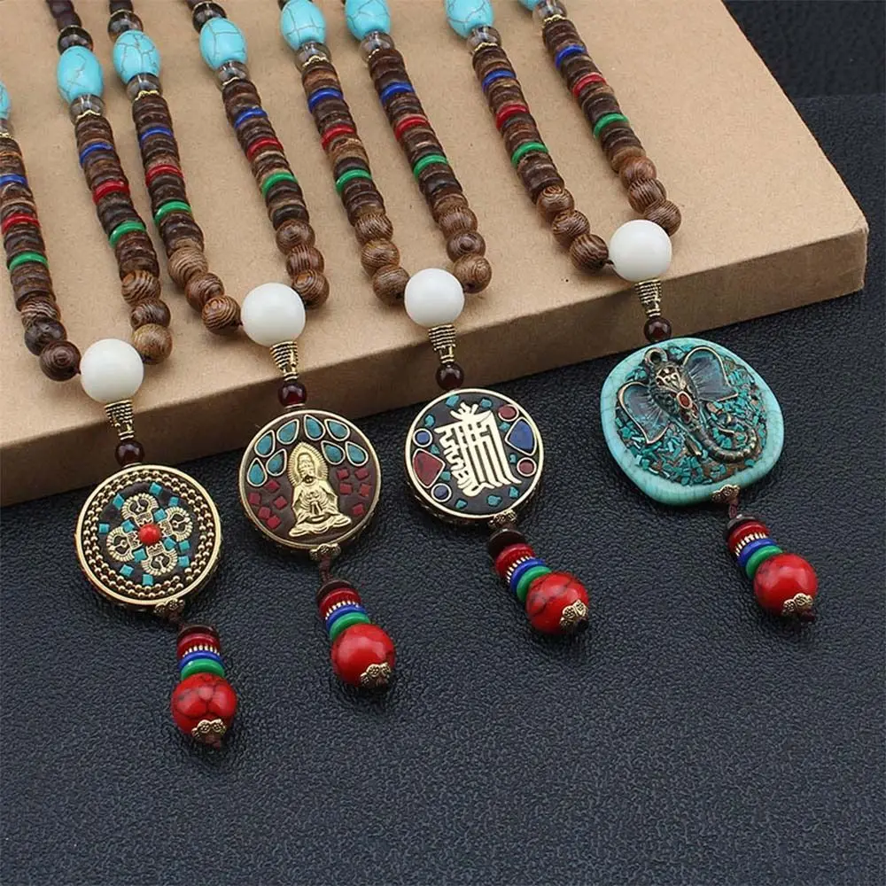7 Styles New Handmade Nepal Buddhist Mala Bead Elephant Pendant Necklace Ethnic Wooden Bead Long Jewelry Lucky Necklace New
