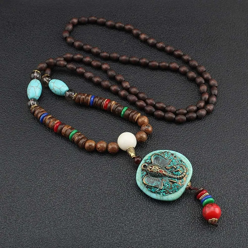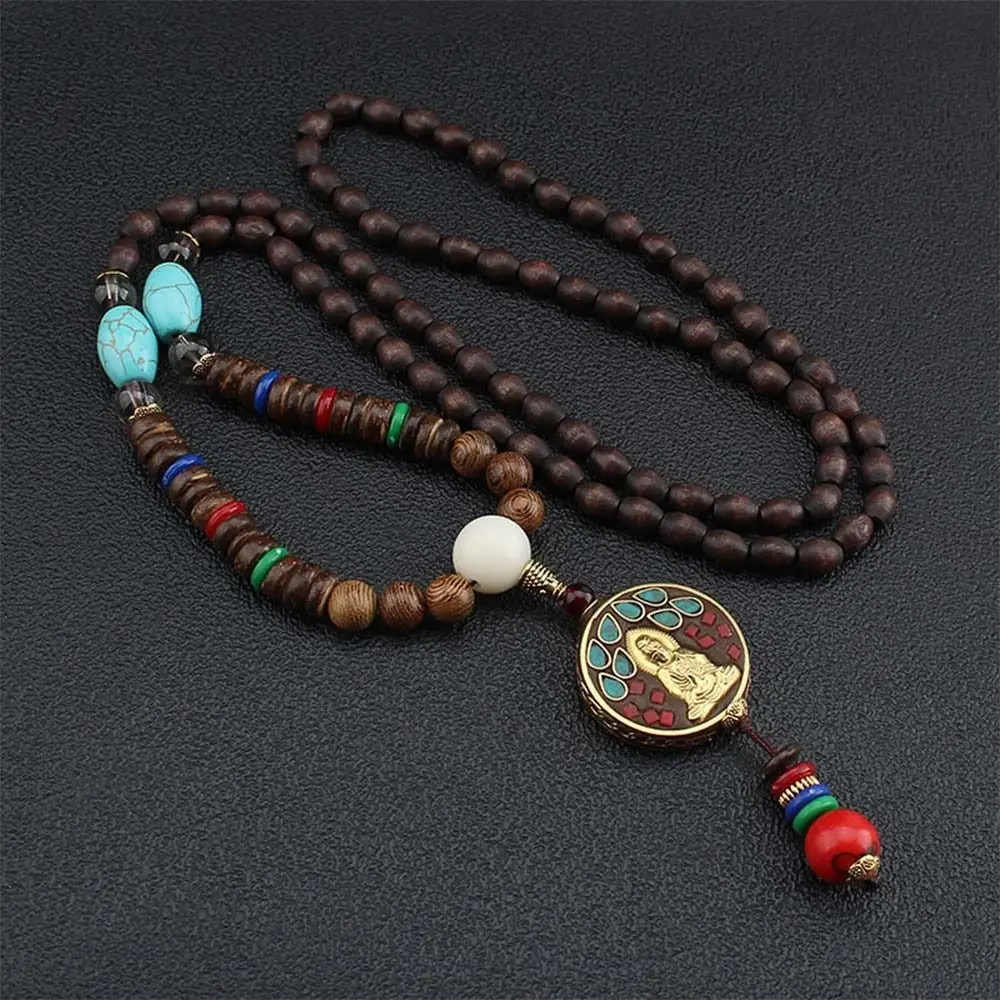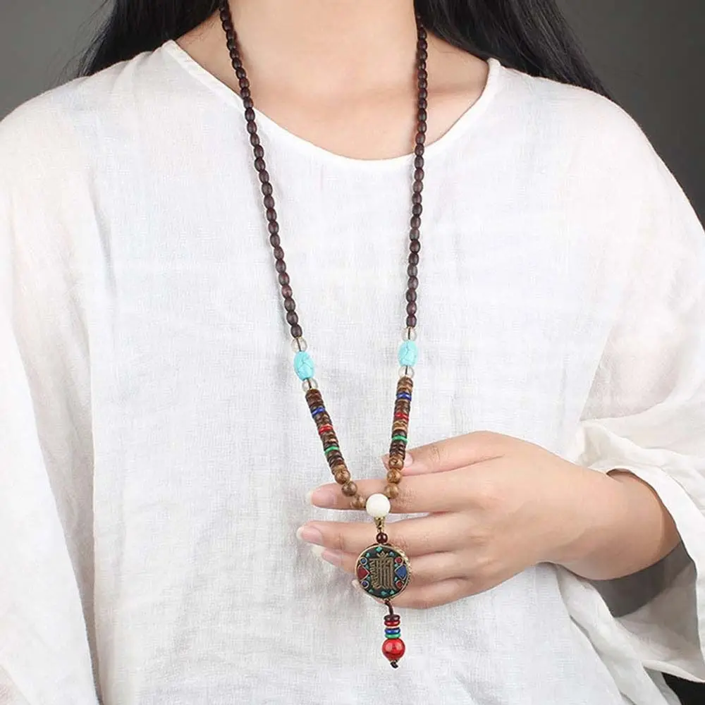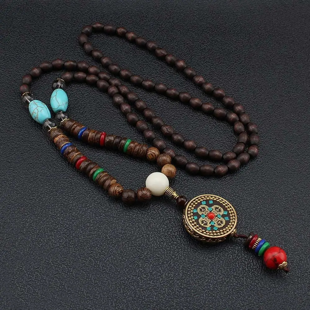 7 Styles New Handmade Nepal Buddhist Mala Bead Elephant Pendant Necklace Ethnic Wooden Bead Long Jewelry Lucky Necklace New