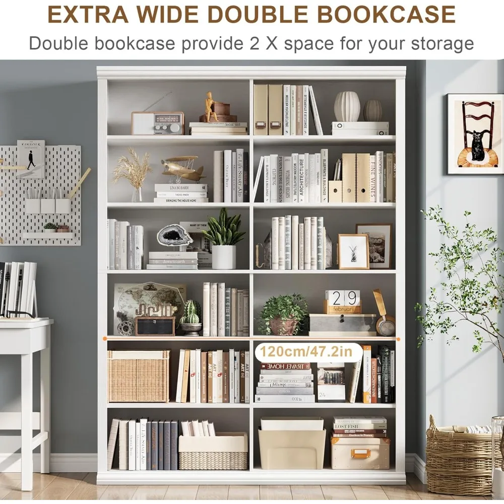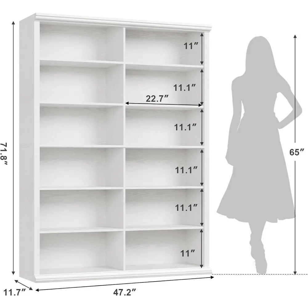 This bookcase offers double the storage space compared to standard models, providing ample room for books, decorative items, and other essentials. With dimensions of 71.8 inches by 47.2 inches, it is an ideal choice for those seeking maximum organization in their space. The bookcase features an elegant and unique design with distinctive top and bottom moldings, adding a sophisticated touch to any room. It combines functionality with style, making it a standout piece in your home or office. Constructed from premium engineered wood, this bookcase is sturdy and durable, with thickened shelves that ensure stability and can support heavy books and items without any wobbling. Its versatile design makes it suitable for any space, whether in an apartment, living room, or office, enhancing your décor while providing practical storage solutions. The sleek design of the bookcase complements both modern and traditional interiors. Assembly is made easy with detailed instructions and labeled parts, making the process hassle-free. The bookcase's smooth surface is scratch-resistant and easy to maintain, ensuring it stays in pristine condition for years to come.