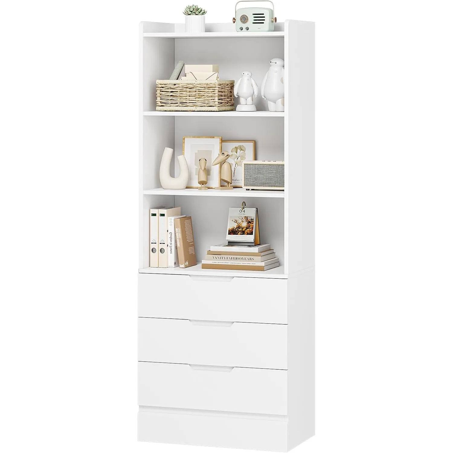 • 【Large Storage Space】 book shelf features 3-tier open storage shelves, 3 drawers and 1 top storage space, which not only expands your storage space and keeps your room tidy, but also make your life and work easier.3 slide-out drawers store intimate items and documents.3 open shelves used to place decorative items or items within easy reach, such as books, photo albums, printers, etc. Place small green plant ornaments on top to embellish your multifunctional bookcase.