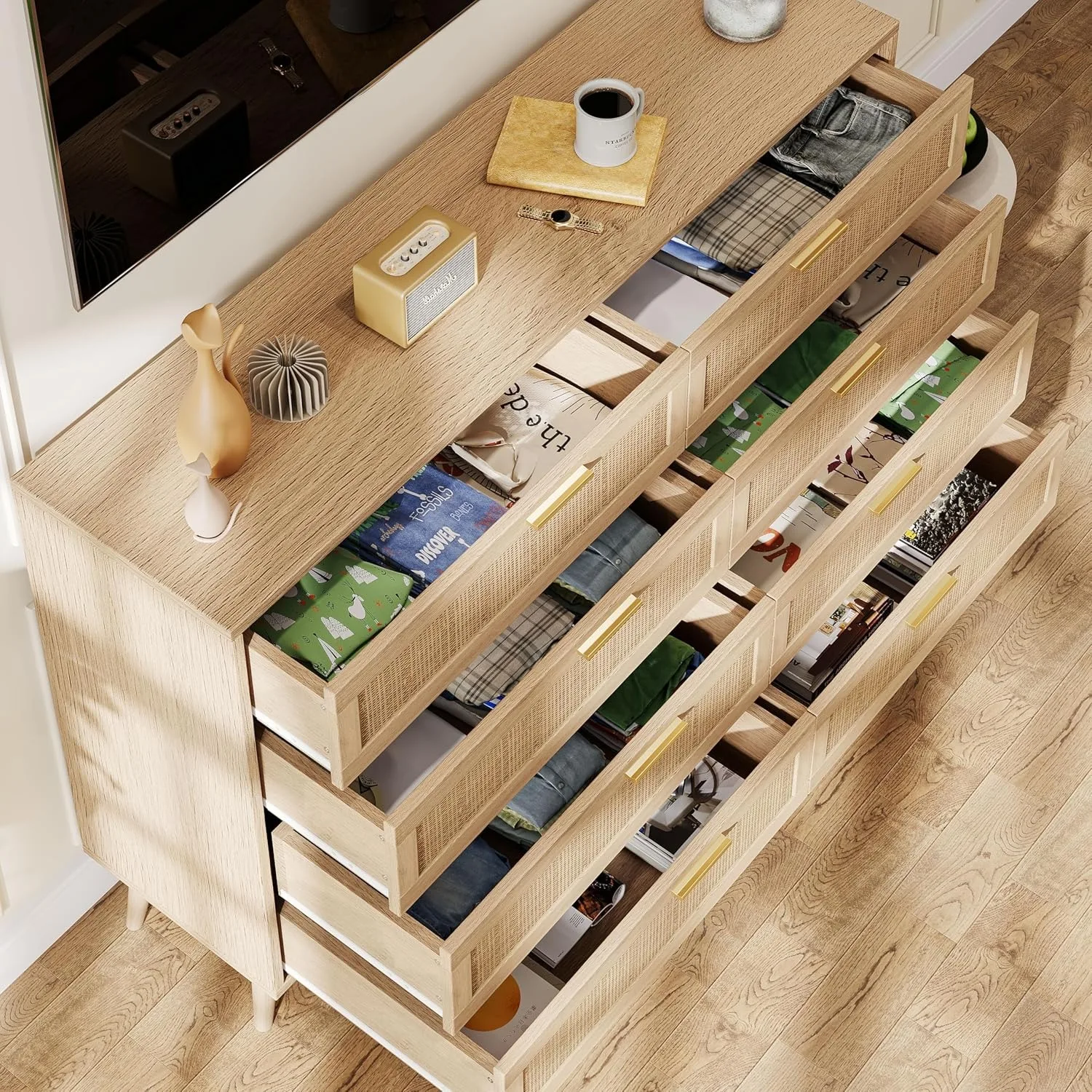 - Style Home: Equipped with woven rattan, while angled legs and golden handles, the drawer dresser will add a mid-century charming to your home. Use on its own or pair it with other rattan matching pieces from Airbuyhome
