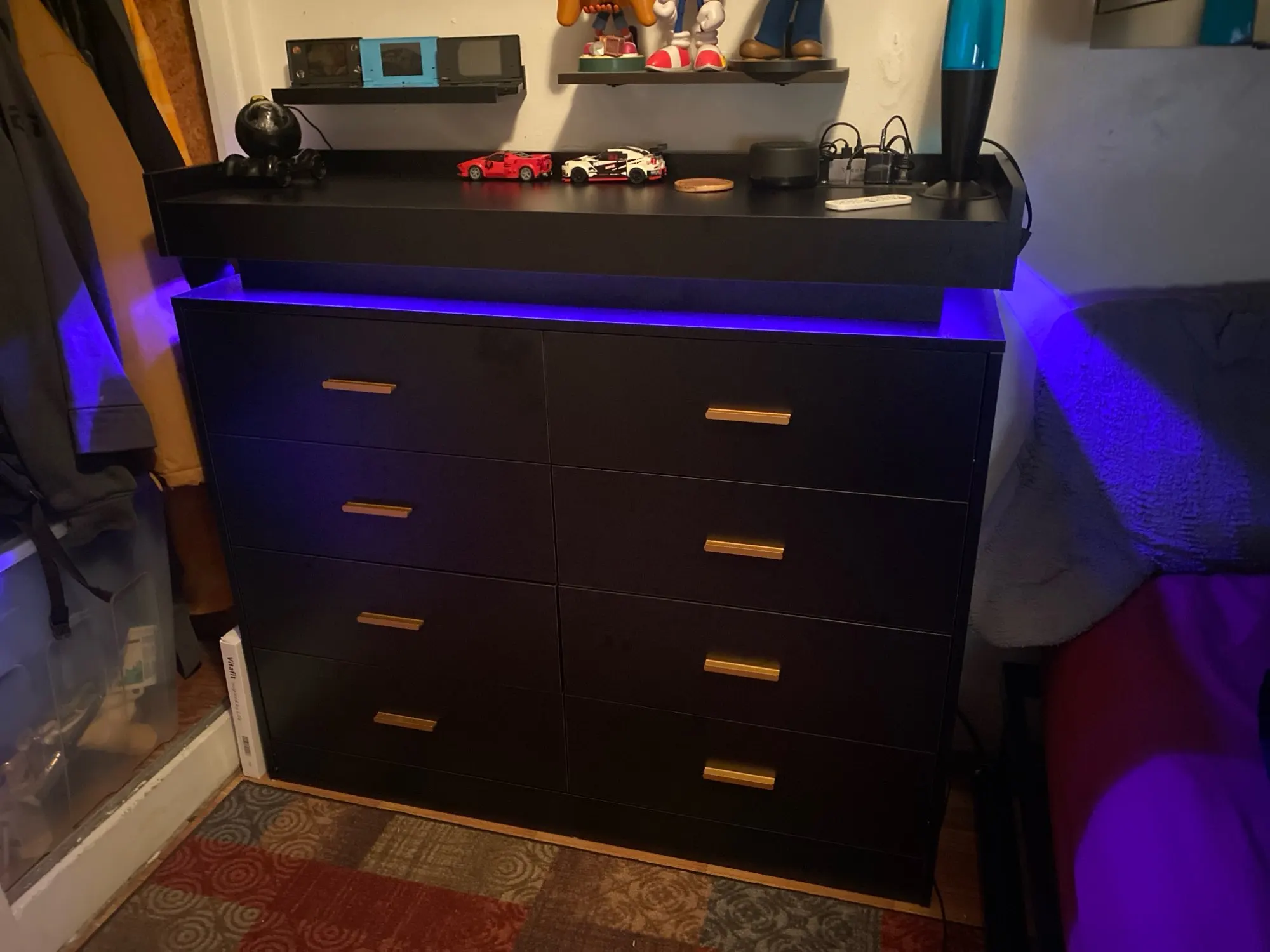 Stylish and Contemporary Design: With its modern style and sleek appearance, this dresser adds a touch of elegance to any room. The LED light strip on the top adds a stylish and unique feature, creating a warm and inviting atmosphere.