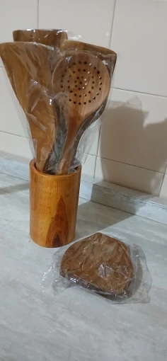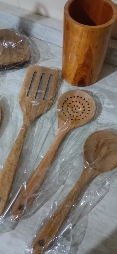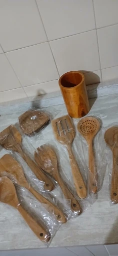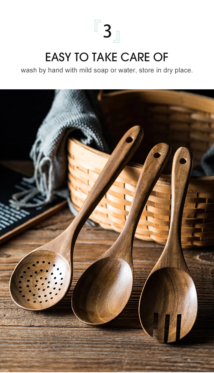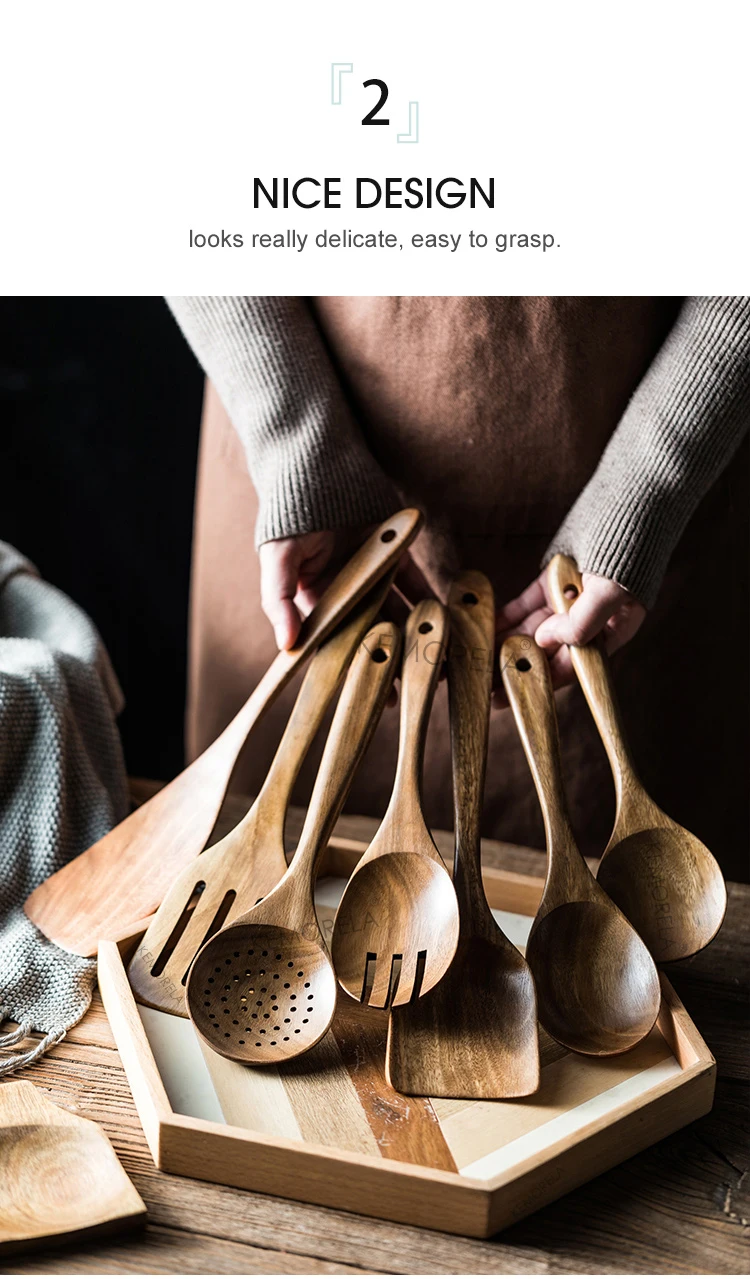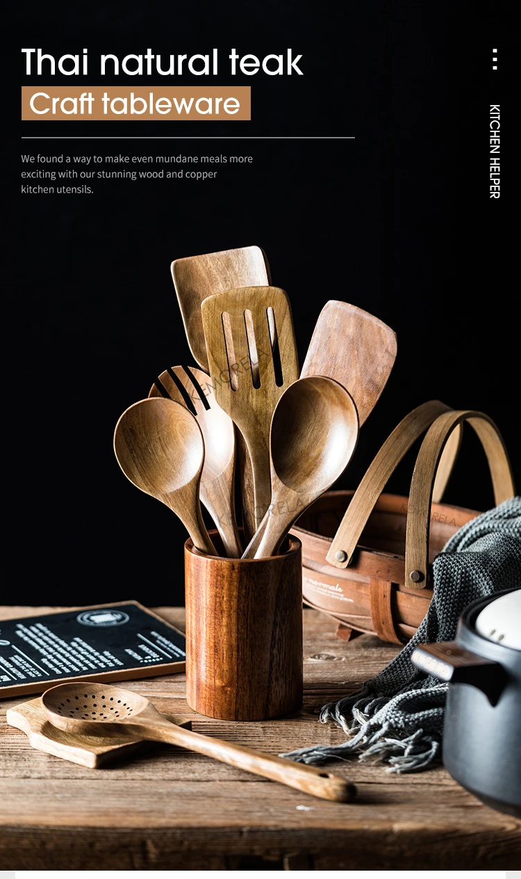9PCS Wooden Spoons For Cooking, Wooden Utensils For Cooking With Utensils Holder, Teak Wooden Kitchen Utensils Set