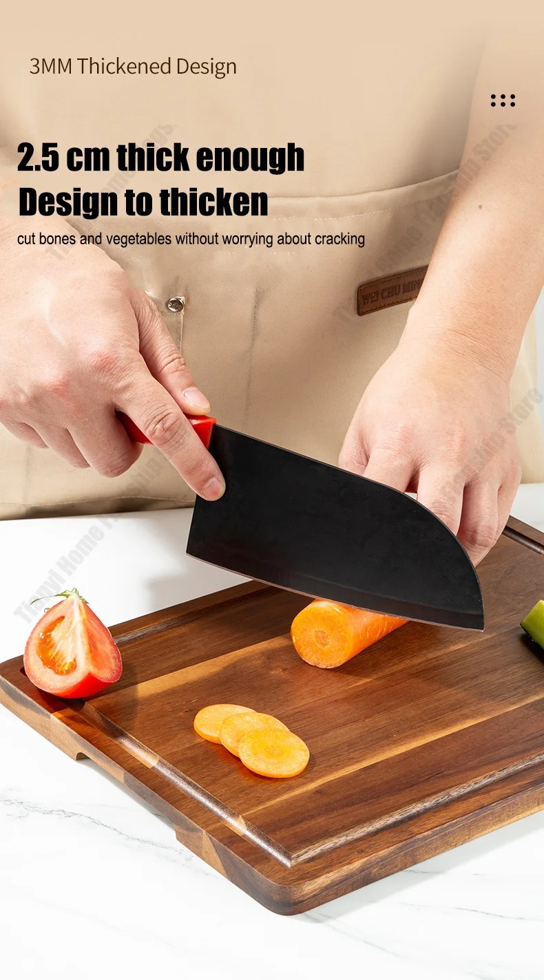 The thickened chopping board offers ample space for cutting various foods, from meat to vegetables and cheese.